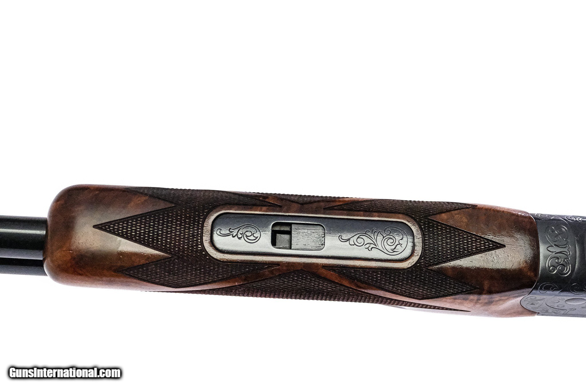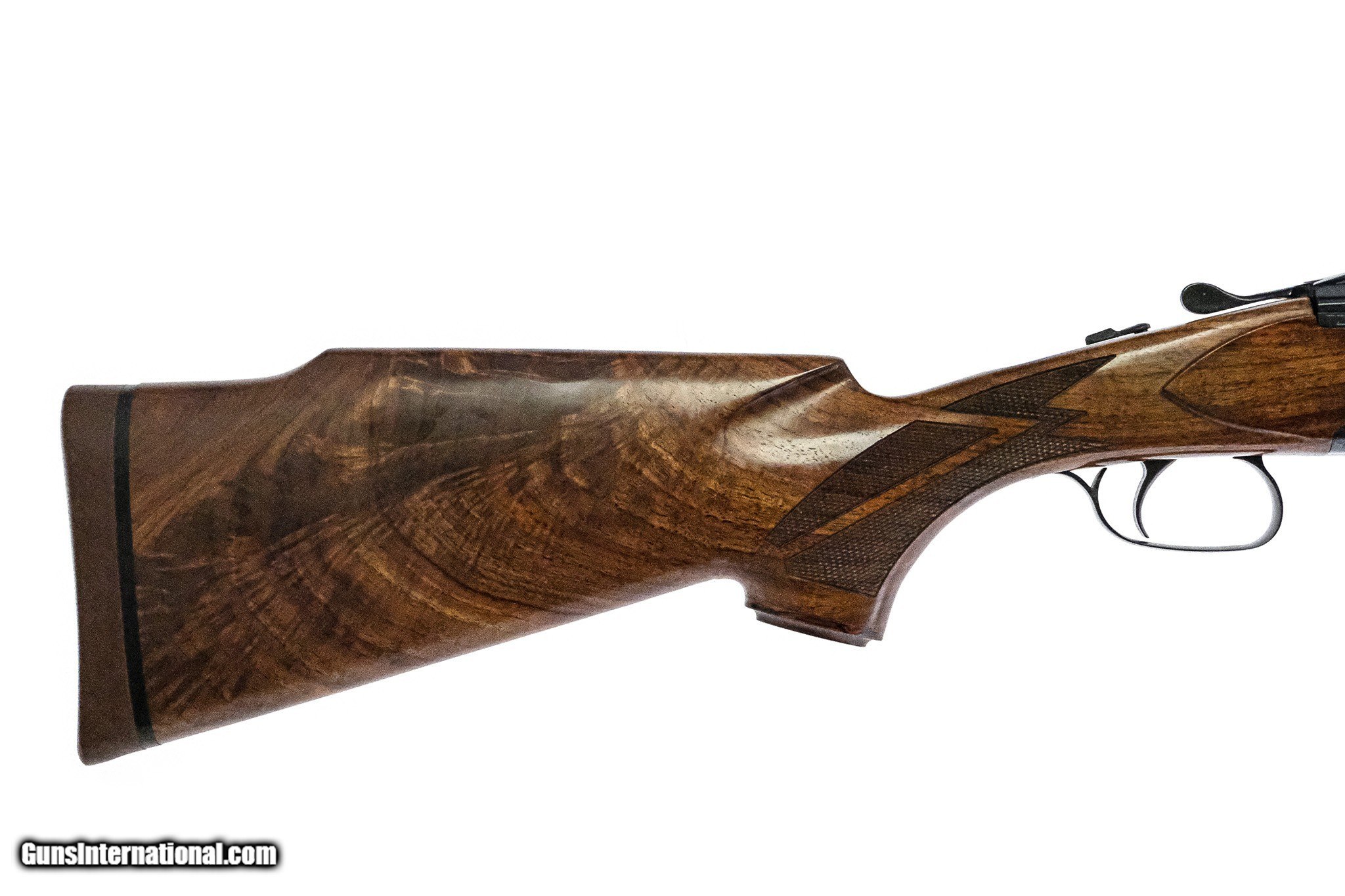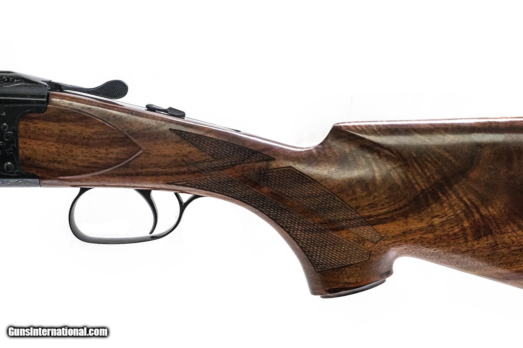 Description: Remington - 3200 Premier, O/U, 12ga. 30" Barrels Choked F/F. Stunning Claro walnut full feathercrotch wood, factory Remingtion recoil pad, monte carlo stock, capped pistol grip, single selective trigger, vent rib, auto ejectors, scroll engraving over blued receiver, target forend, gun appears unfired and remains in 99% condition, the nicest wood we have seen on these guns, gun has had factory update, available for immediate delivery. S & H - $50.00. Inv: 74776 8 lbs. 14 oz. 14 ¼” x 1 3/8” x 1 ¾” MC $3,699.00 SOLD |