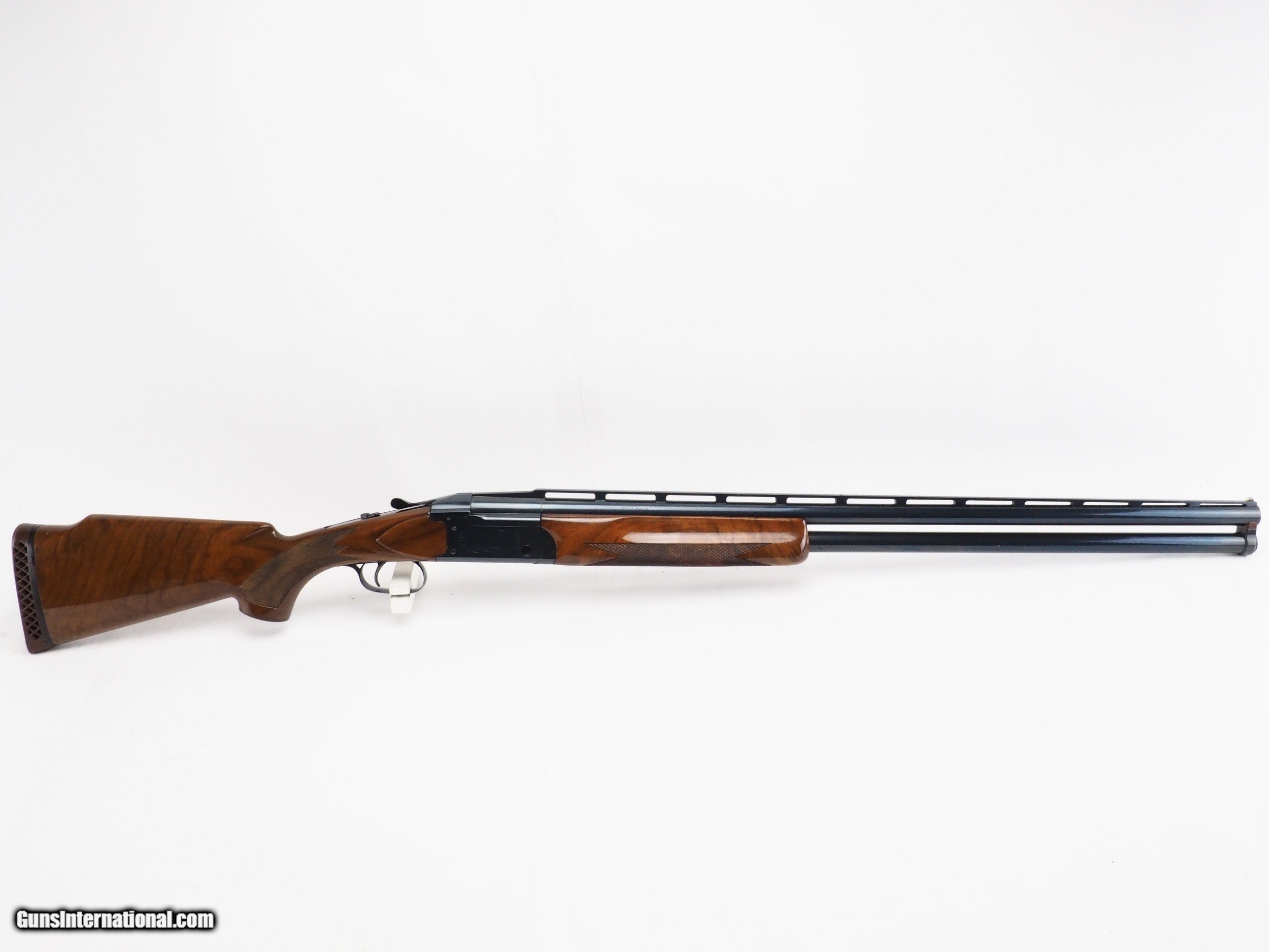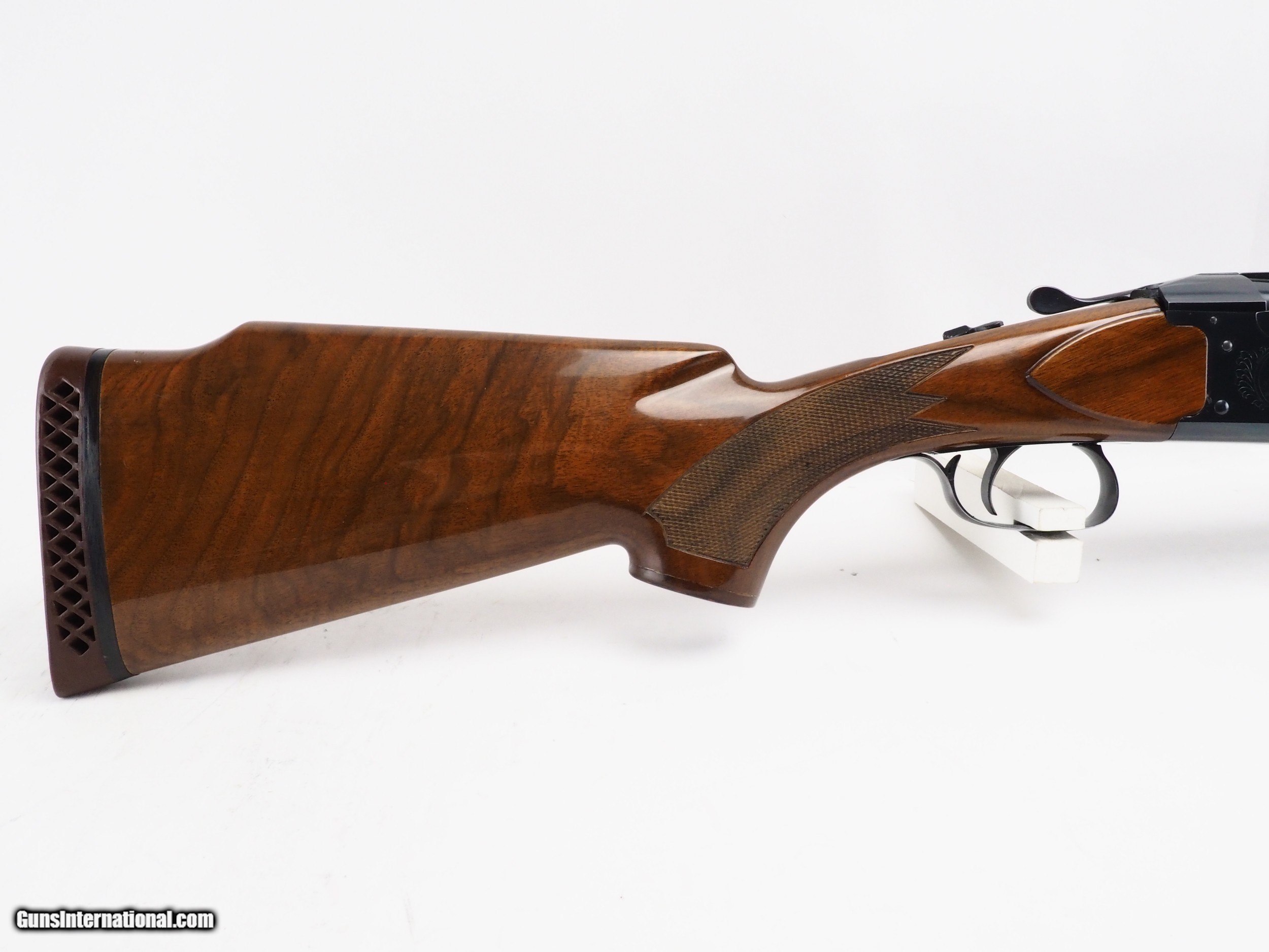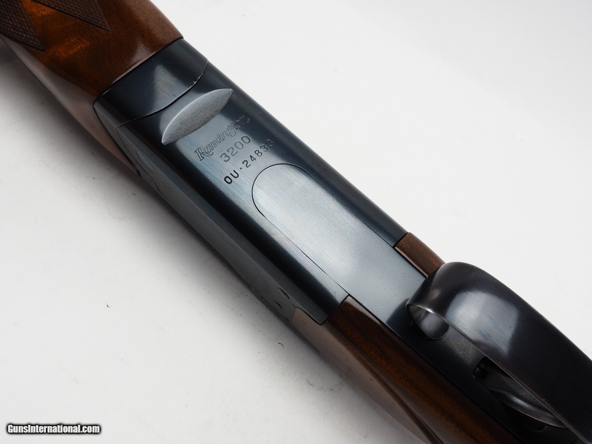 Description: Book #211. Price: $1495.00 Remington 3200 Special Trap with the update done at Remington (see photos). Metal finish is excellent; wood finish shows only a few small handling marks. Barrels lock up very tight, and do not flop when opened. Make: Remington Model: 3200 Special Trap Hand: right Gauge: 12ga Barrel length: 30" LOP: 14 3/4" Drop at comb: 1 1/2" Drop at Monte Carlo: 1 3/8" Drop at heel: 1 3/4" Chokes: fixed, .039" top/.032" bottom Case: none SOLD |