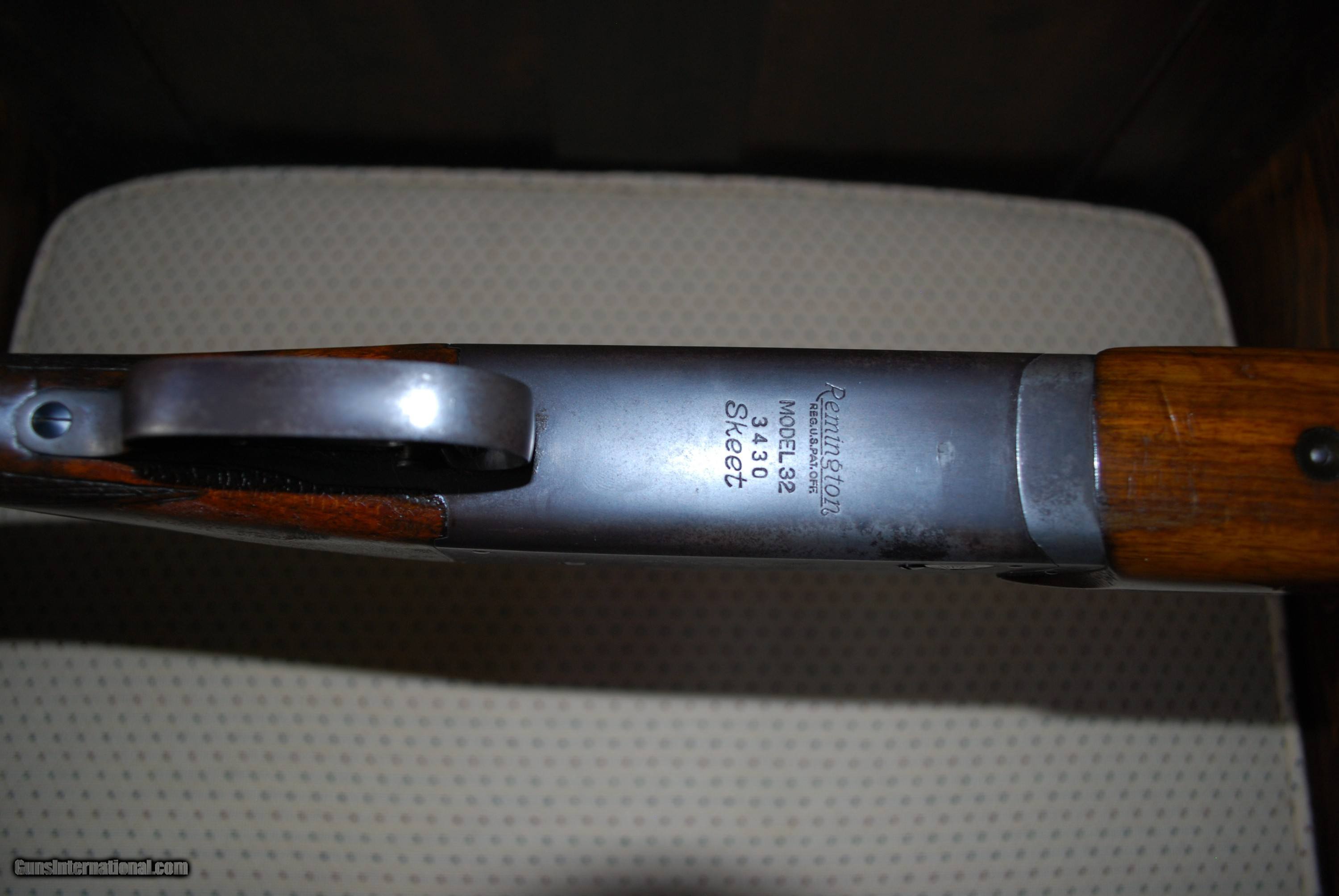 Description: Original model 32 skeet 26 inch barrels with briley thin wall chokes added stock needs refinishing no cracks sold SOLD Shotgun Gauge: 12 Gauge Manufacturer: Remington Model: 32 Barrel Length: 26 Ejectors: no Condition: fair Metal Condition: good Wood Condition: fair Bore Condition: good |