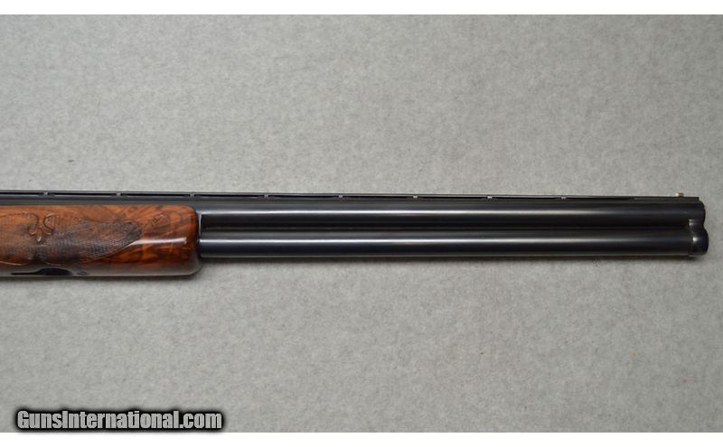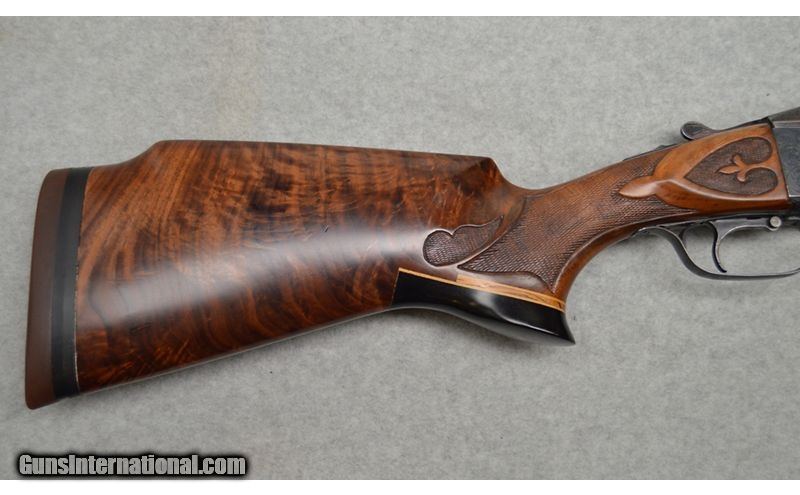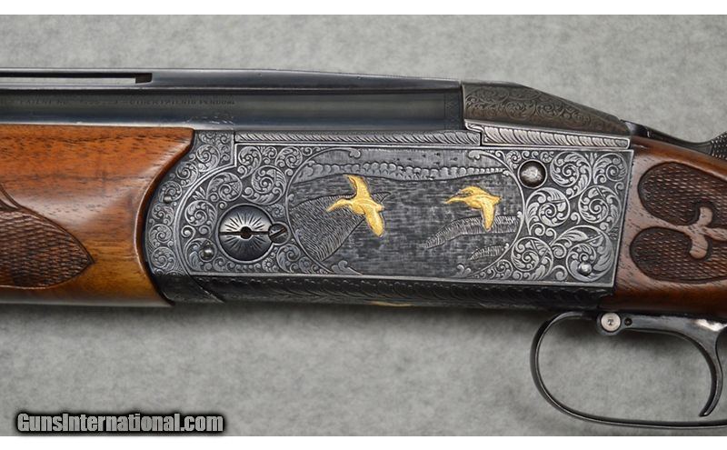 Description: Upgraded Remington Model 32, 12 gauge shotgun is in excellent condition. It features elegant engraving on the frame with golden inlays. The left side of the frame is covered with a scroll engraving around a scene with two flying gold inlaid ducks. The right side of the frame is covered in a scroll engraving around a scene of a golden inlaid game bird flying in the woods. The bottom has the same scroll engraving around a golden inlaid game bird flying in a wooded scene. It has a wooden fore end and stock with a checkered pattern on the fore end and grip. The stock has an added piece and rubber butt pad. There are small handling marks on the barrel and stock. SN: 2847 12 Gauge SOLD Chambers: 2 3/4 Metal Condition: Excellent condition with handling marks Wood Condition: Excellent condition with handling marks Bore Condition: Clean Barrels: 28 Stock Dimensions: LOP 14 Fore End: Wooden with a checkered pattern Butt Pad: Rubber Weight: 8lbs 15oz Chokes: Modified Item Location: Fort Worth, TX |