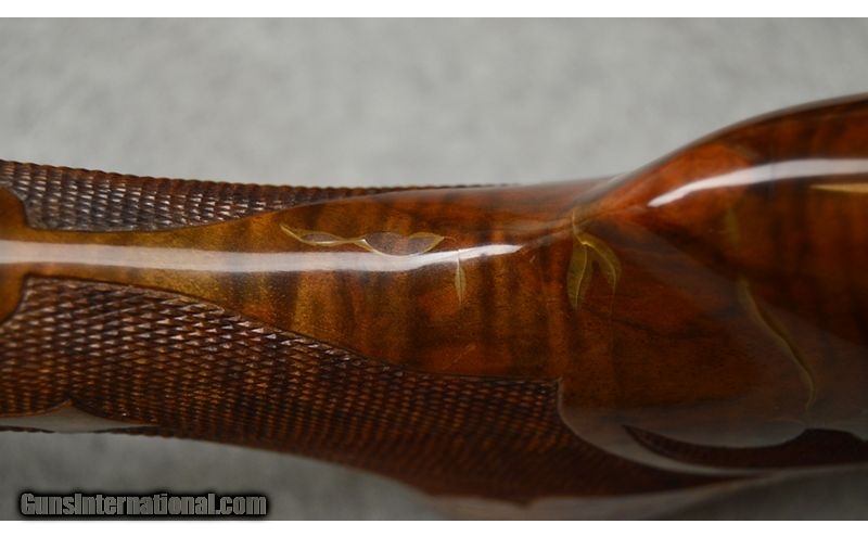 Description: Upgraded Remington Model 32, 12 gauge shotgun is in good condition. It features an elegant engraving all over the frame and has Neil Hartliep signature on the left side. It has a scroll pattern around a golden inlaid game bird on the left, right, and bottom of the frame. The stock has an added piece on the grip. The clear coating laminate on the stock is coming off and cracked. It has other handling marks on the barrel and fore end. SN: 3462 12 Gauge SOLD Chambers: 2 3/4 Metal Condition: Very good condition with handling marks Wood Condition: Fair Bore Condition: Clean and shiny Barrels: 28 Triggers: 15 1/2 Stock Dimensions: LOP 15 1/2 Fore End: Wooden with a checkered pattern Butt Pad: Rubber Weight: 9lbs Chokes: Improved cylinder Item Location: Fort Worth, TX |