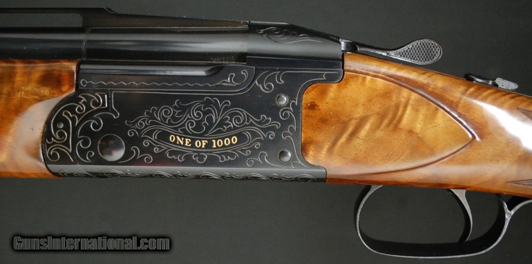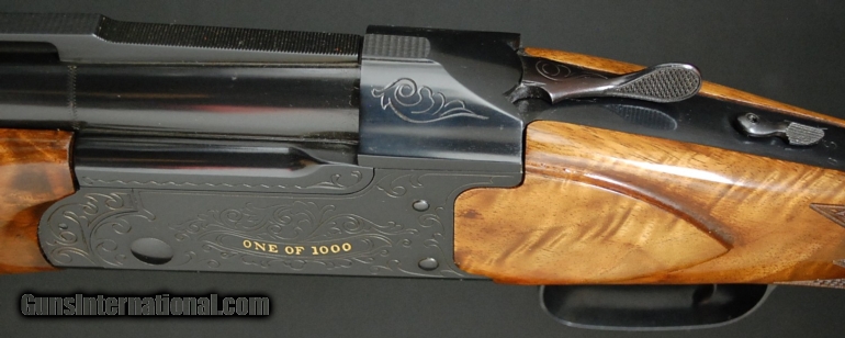 Description: REMINGTON – Model 3200 1 of 1,000, 30” F/F, Highly figured Claro walnut stock, capped pistol grip, factory recoil pad, vent rib, single selective trigger, automatic ejectors, blued receiver with scroll engraving, gloss finish, target forend, gun remains in mint and as-new condition throughout.