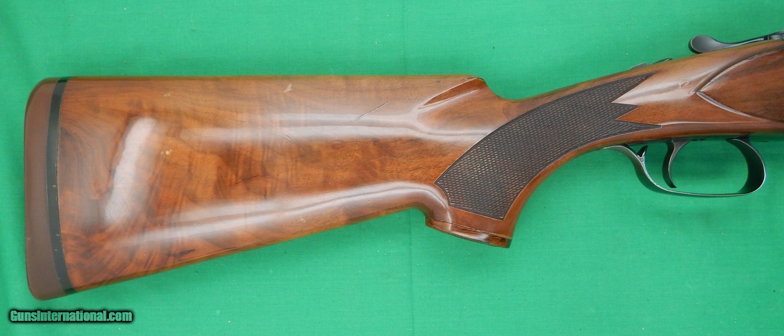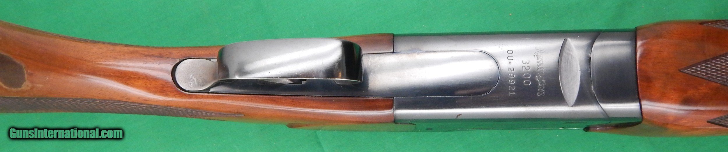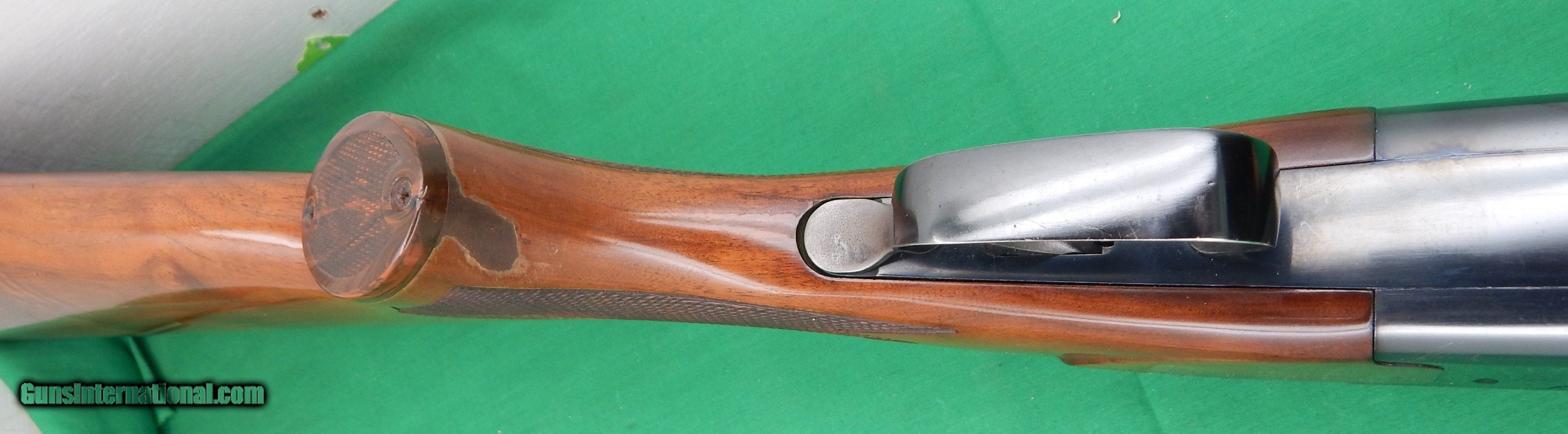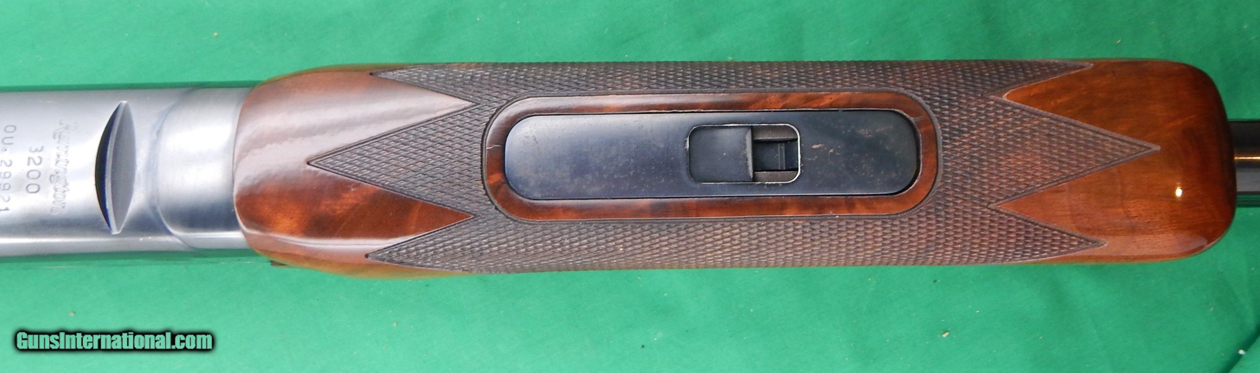 Description: Remington Model 3200 Trap Gun, 32" BBLS, Full over Imp Mod, Auto Ejectors, Nice wood, Dog engraved of both sides of the receiver, Remington Leather Pad, LOP 14 1/4", SN OU 29921, Weights a little over 10 Pounds. There is a worn spot on the grip as shown. Used but not abused, MO plus $25.00 shipping, Insurance extra, FFL required. SOLD Shotgun Gauge: 12 Gauge |