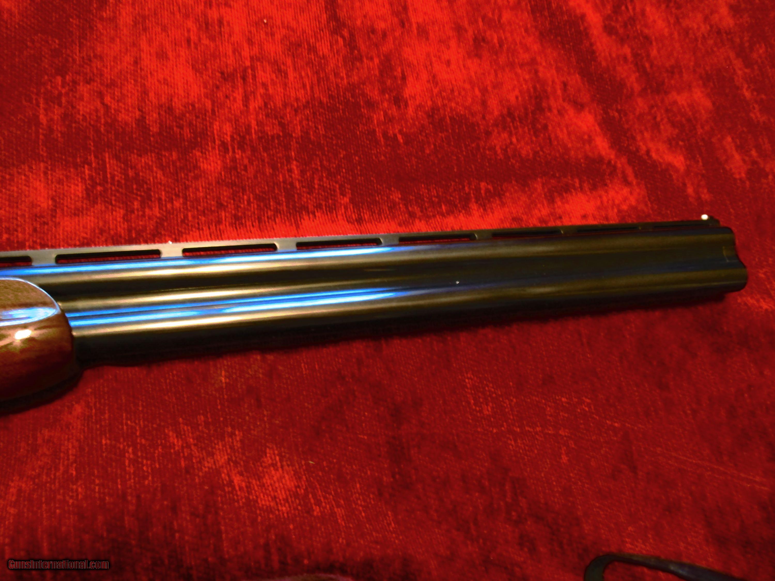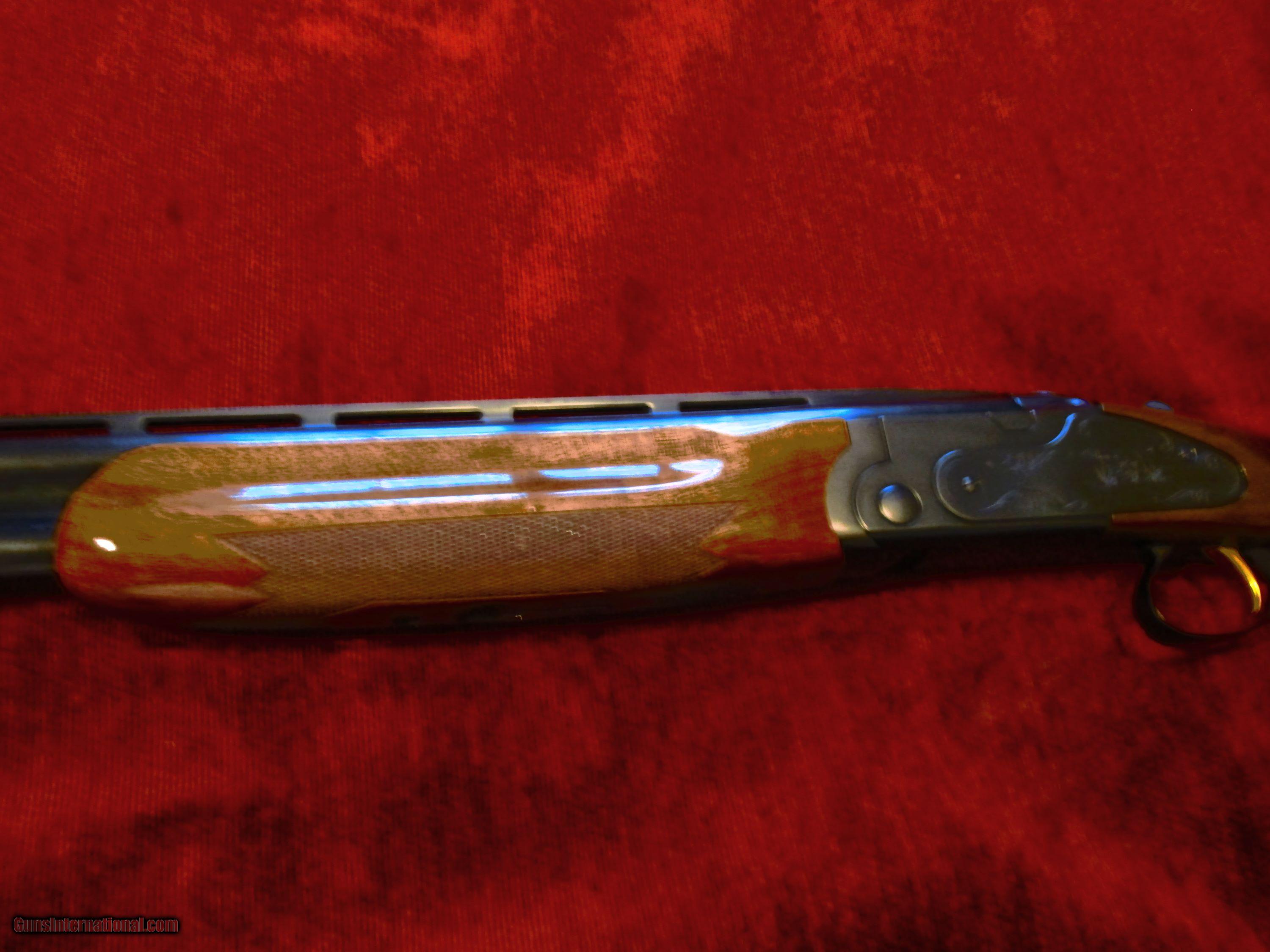 Description: 28" VR, (3) Rem.- chokes, double bead - ivory front, single select gold trigger, ejectors, gamescene sideplates of setters, high gloss PG highlt figured American walnut stock & forearmfactoryvented recoil pad (original), 99% as new SOLD |