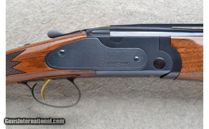 Description: This Remington Model Peerless Field is an Over and Under 12 Ga. shotgun. It has 27.5 inch barrels with ejectors and a top barrel ventilated rib. With 3 inch chambers it takes screw in chokes and comes with two Skeet tubes. It has a white bead front sight and a metal bead middle sight. The butt stock is a checkered grip walnut pistol grip. The forearm is a checkered grip walnut with finger grooves. It has a golden SST. 12 Gauge SOLD Chambers: Over & Under 2 3/4 inch or 3 inch chambers. Metal Condition: Excellent with some very minor use marks on the receiver sides. Wood Condition: Good. Some use marks. Bore Condition: Bright and shiny. Barrels: 27.5 inch barrels with a top barrel ventilated rib and ejectors. Triggers: Golden SST. Stock Dimensions: LOP 14 1/8 inches. Fore End: Checkered grip walnut with finger grooves. Butt Pad: Remington black rubber recoil pad. Weight: 7 lb. 8 oz. Sights: White front bead and metal middle bead. Chokes: Comes wit two Skeet choke tubes. Item Location: Richfield, WI |