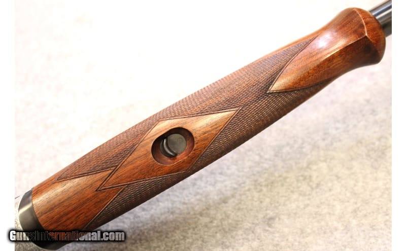 Description: This Remington Premier chambered in 12 Ga features, engraves stainless receiver, blue finish ribbed barrel, brass bead mid-sight, white bead front sight, rubber recoil pad, and wood checkered furniture. 12 Gauge SOLD Metal Condition: Excellent Wood Condition: Excellent Bore Condition: Bright Barrels: 26 Weight: 7 lbs. Item Location: Hoffman Estates, IL |