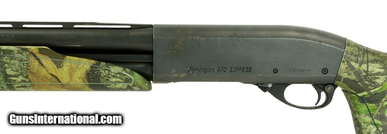 Remington 870 Express 12 Gauge shotgun. Pump shotgun with pistol grip camo stock. Has 28” barrel. Very good condition.