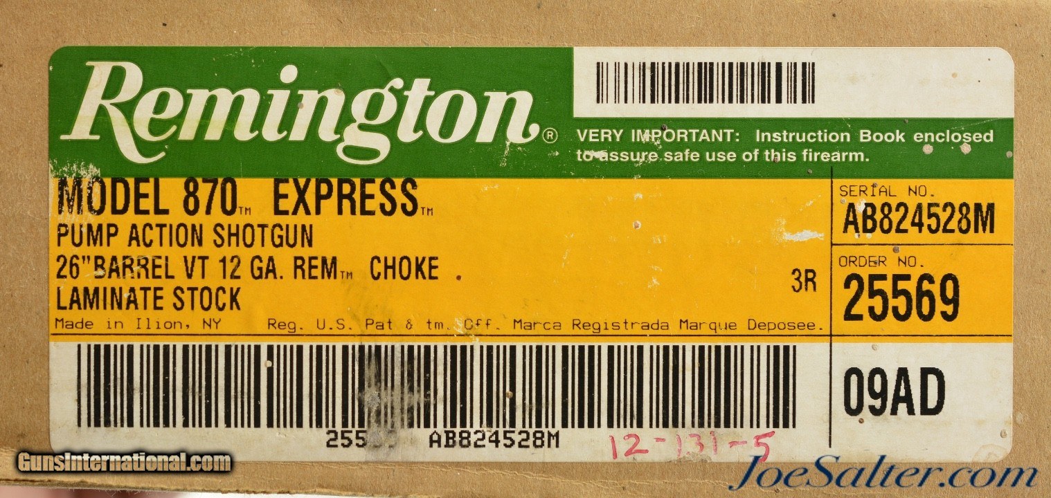 Description: Serial #AB824528M, 12 Gauge (2 3/4" & 3" chamber), 26 inch barrel with a bright, excellent barrel with the Rem Choke system with a modified choke installed. In excellent, like new condition the barrel and frame show 99% plus original matte finish with a few minor handling blemishes. The checkered laminate stock is likewise excellent. It comes in the original box numbered to the gun with the choke wrench, green plastic magazine plug, manual, paperwork and a Regal gun lock. An early 2000's made Remington that remains in excellent plus condition. FFL Price: $565.00 Contact Seller |