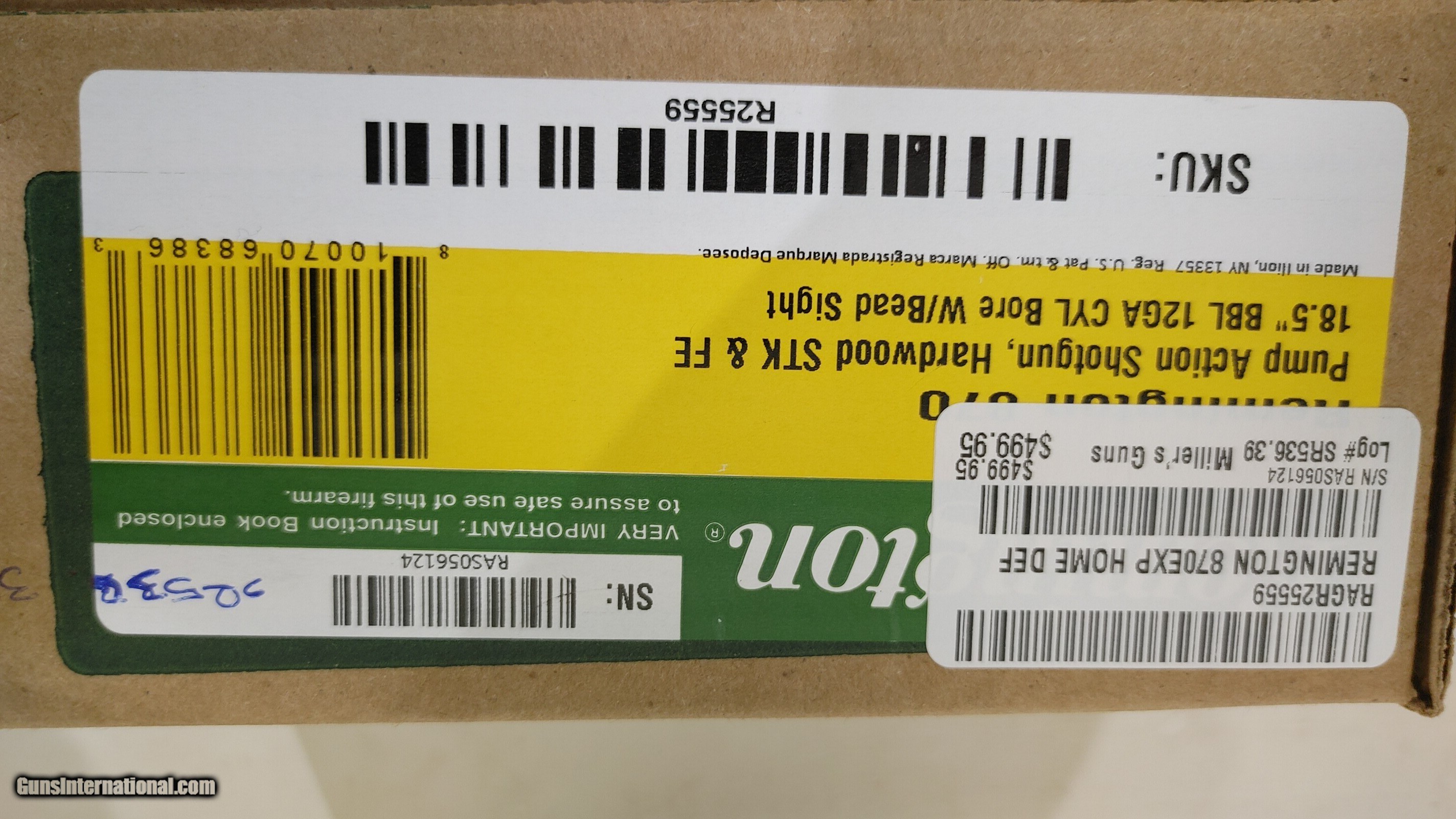 Description: new Remington 870 TAC 12/18.5 BL/WD 3 4SH 870 HW HOME DEFENSE 4-SHOT new in box (MODEL:870 TACTICAL); (ACTION:PUMP ACTION); (BARREL LENGTH:18.5); (CAPACITY:4); (OVERALLLENGTH:38.5); (RECEIVER:MILLED); (SIGHTS:SINGLE BEAD); (STOCKFRAMEGRIPS:WOOD STOCK STAINED HARDWOOD); (WEIGHT:7 LBS. 8 OZ.); (CHAMBER:3); (DRILL-TAPPED:FALSE); (SHOTGUN:SHOTGUN) Buyer pays shipping Millers Gun Center Located in New Castle, Delaware "Home of TAX-Free shopping" No Credit Card Fees SOLD Serial Number: RAS056124 |