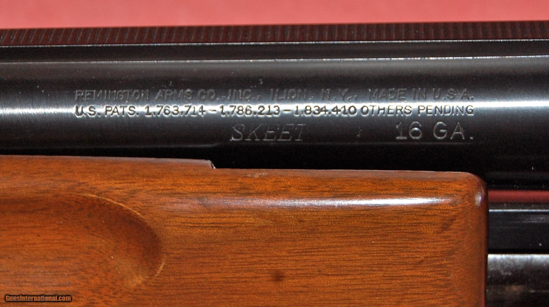 Description: Very rare Remington model 31 skeet grade in 16ga.Built in the mid 1930s,this gun has a 26" solid rib barrel choked skeet 1.The gun is in mint condition retaining 100% of the original blue and 100% of the original wood finish.It has deluxe checkered wood with a beavertail forend and a Remington buttplate.This is an extremely rare gun in this condition and configuration.It would make a terrific upland bird gun for grouse,quail,or early season pheasants or an unusual addition to your collection.C&R eligible. SOLD Curio/Relic: Yes Manufacturer: Remington Model: 31 Skeet Serial Number: 505906 Chambers: 23/4 Metal Condition: excellent Wood Condition: excellent Bore Condition: excellent Action: pump Gauge Info: 16ga Rib: solid Chokes: skeet 1 |