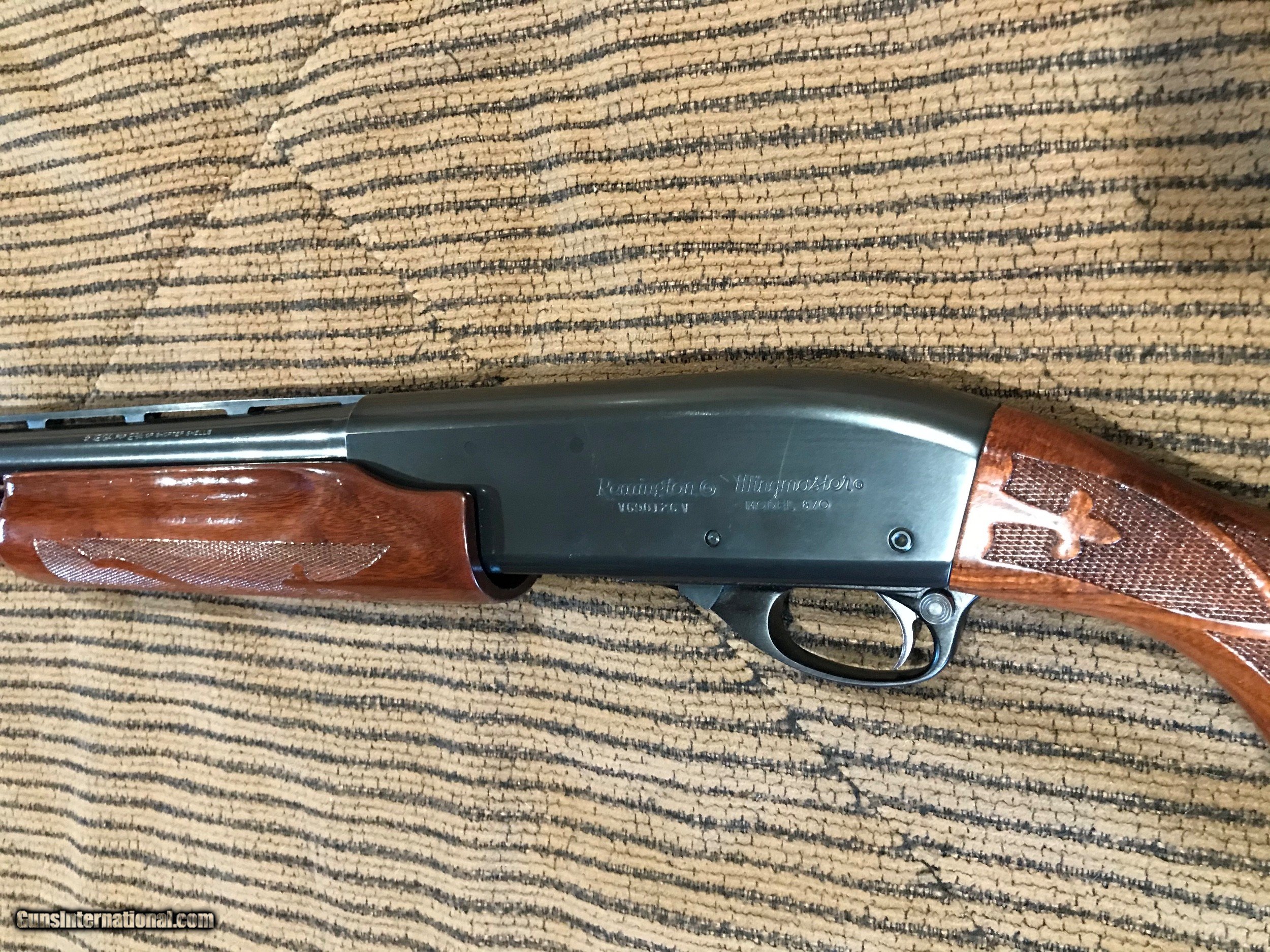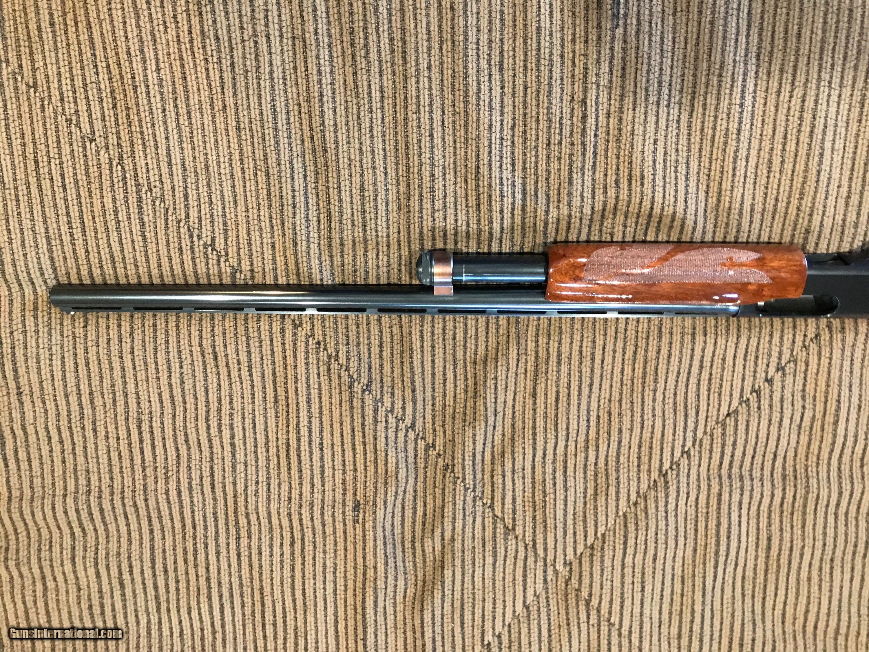 Description: Sold pending funds. 870 12ga Wingmaster for sale. 26" Skt target barrel, all original, 98%+. Nice older Wingmaster for sale. Near perfect, other than the one small scratch on the left side (shown). SOLD |