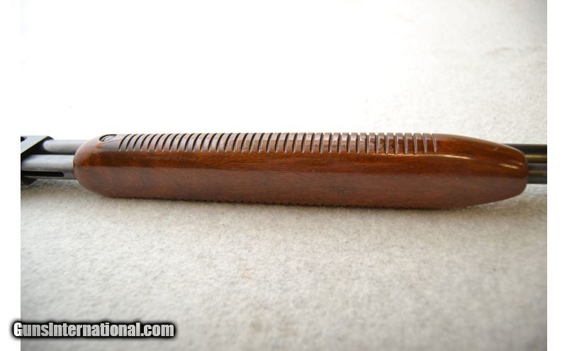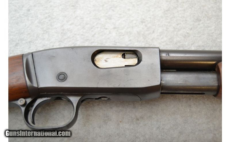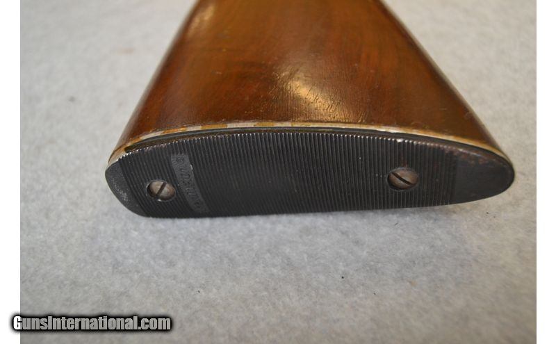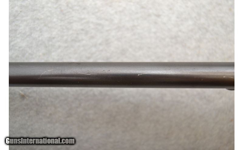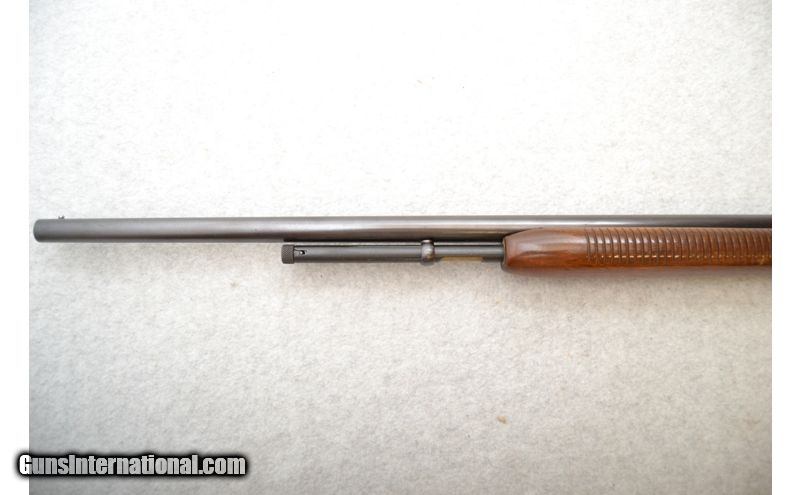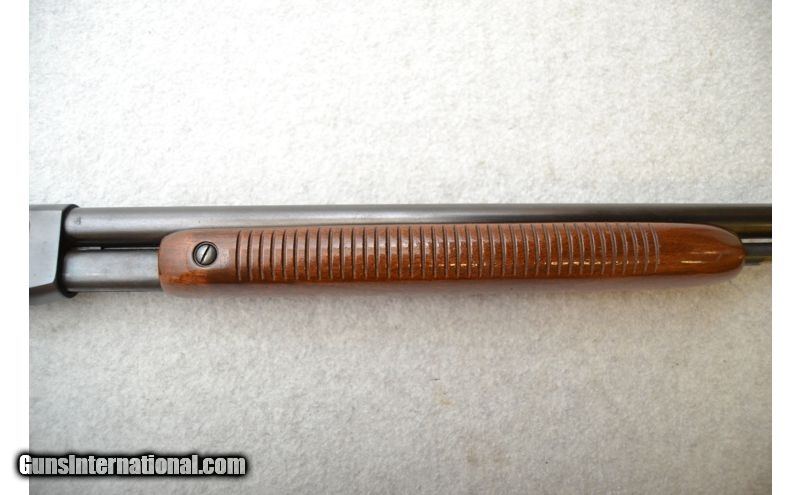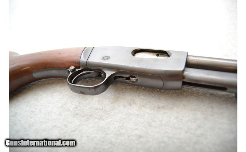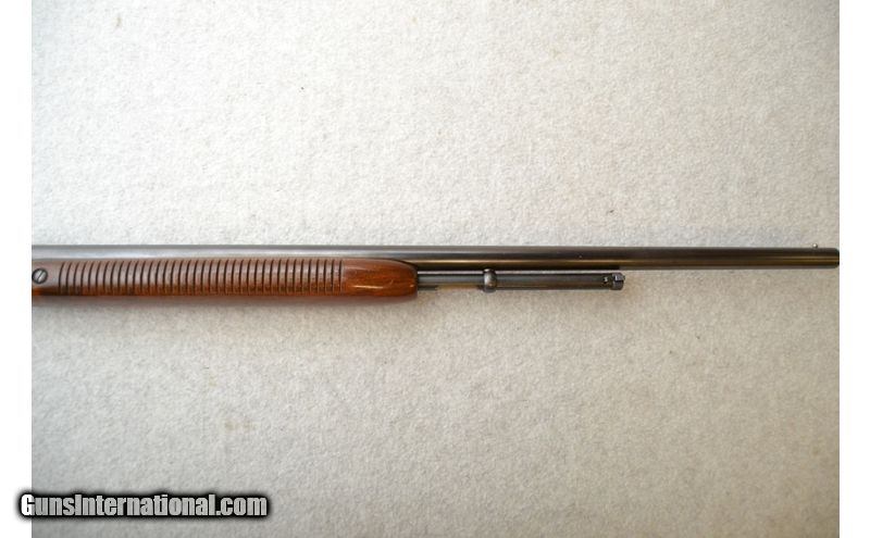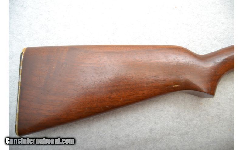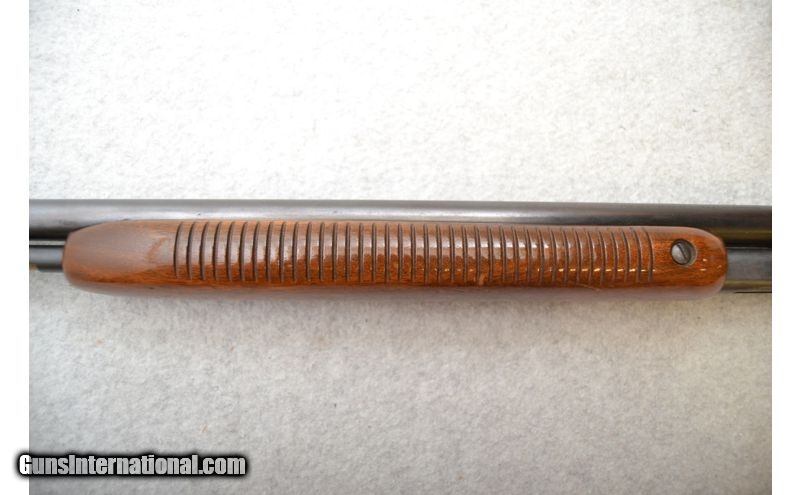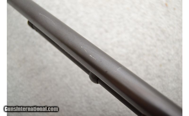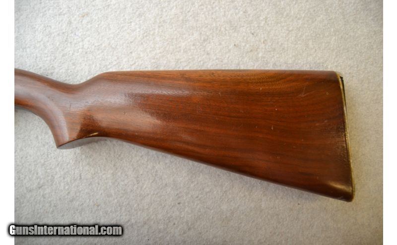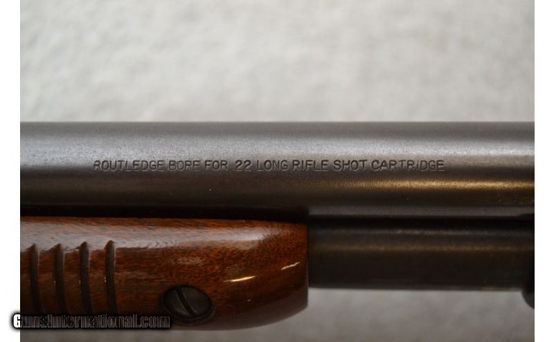 Description: Good condition for its age. Stock has some signs of use but nothing severe. Metal has some scratches on the top of the barrel and some minor handling marks. Bore looks good. .22 Long Rifle SOLD Chambers: Pump-action fed from a tubular magazine. Metal Condition: Good. Wood Condition: Good. Bore Condition: Very good to excellent. Barrels: 23½" Blued with Routledge bore. Triggers: Wide blued metal with smooth surface. Stock Dimensions: 13¾" LOP Fore End: Hardwood with side grooves. Butt Pad: Metal plate. Weight: 5.5 lbs. Sights: Stainless front bead. Chokes: .22 bore opening to .410 gauge. Item Location: Louisville, KY |