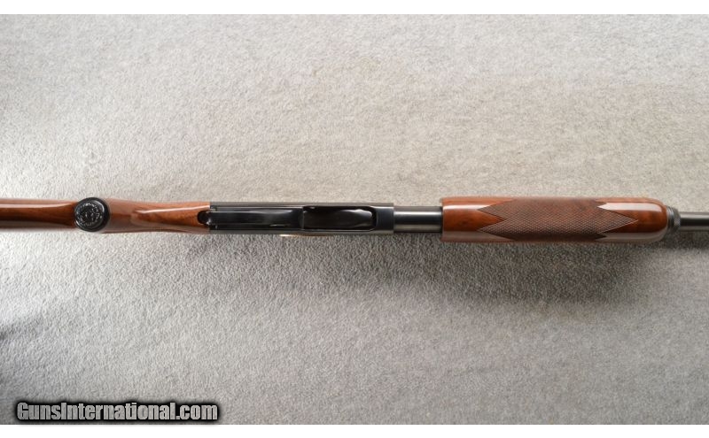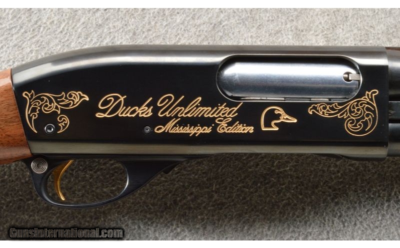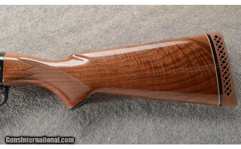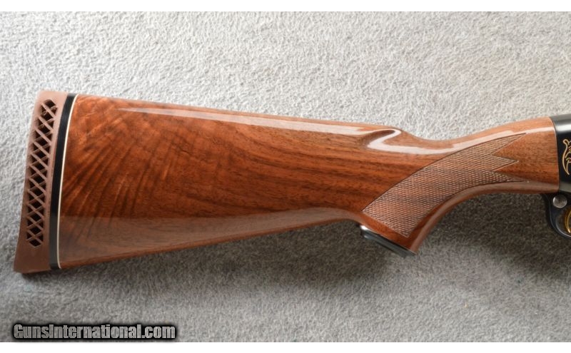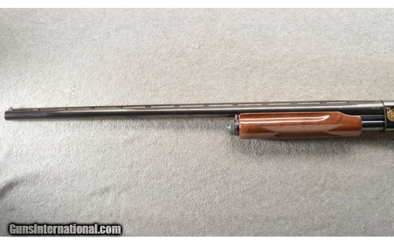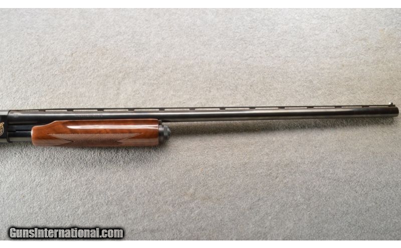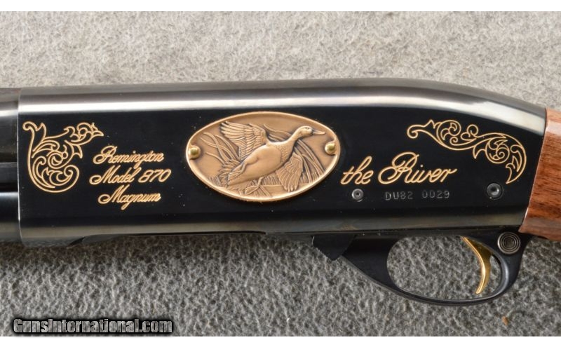 Description: This is an As New Remington 870 Magnum 12 gauge 1982 DU shotgun. The shotgun is as new and has not been fired since leaving the factory. It has a 30 inch vent rib barrel with a fixed Full choke. There are no negative issues with this fine looking shotgun. This shotgun is titled The River and is SN 0029. SOLD Manufacturer: 1982 Caliber Info: 12 Gauge. Chambers: 3 inch pump action repeater. Metal Condition: As New. Wood Condition: As New. Bore Condition: As New. Barrels: 30 inch with a vent rib. Triggers: Single gold color. Stock: Very nice walnut with a checkered pistol grip and a black grip cap. Stock Dimensions: 13 7/8 inch LOP. Fore End: Matching checkered walnut ith finger grooves. Butt Pad: Remington brown rubber butt pad. Weight: 7 Lbs. 10 Oz. Sights: Single white front bead on the vent rib. Chokes: Fixed FULL. Item Location: Owatonna, MN |
