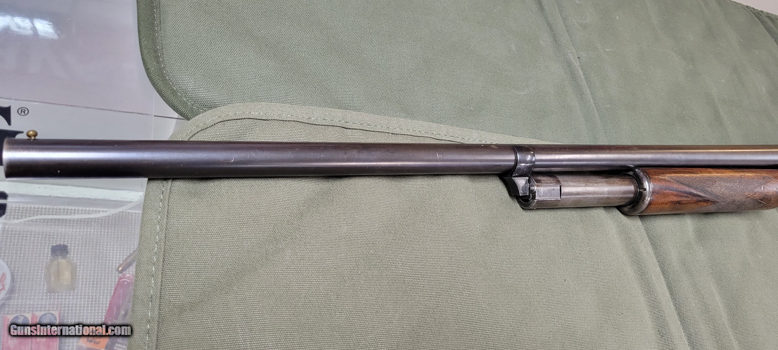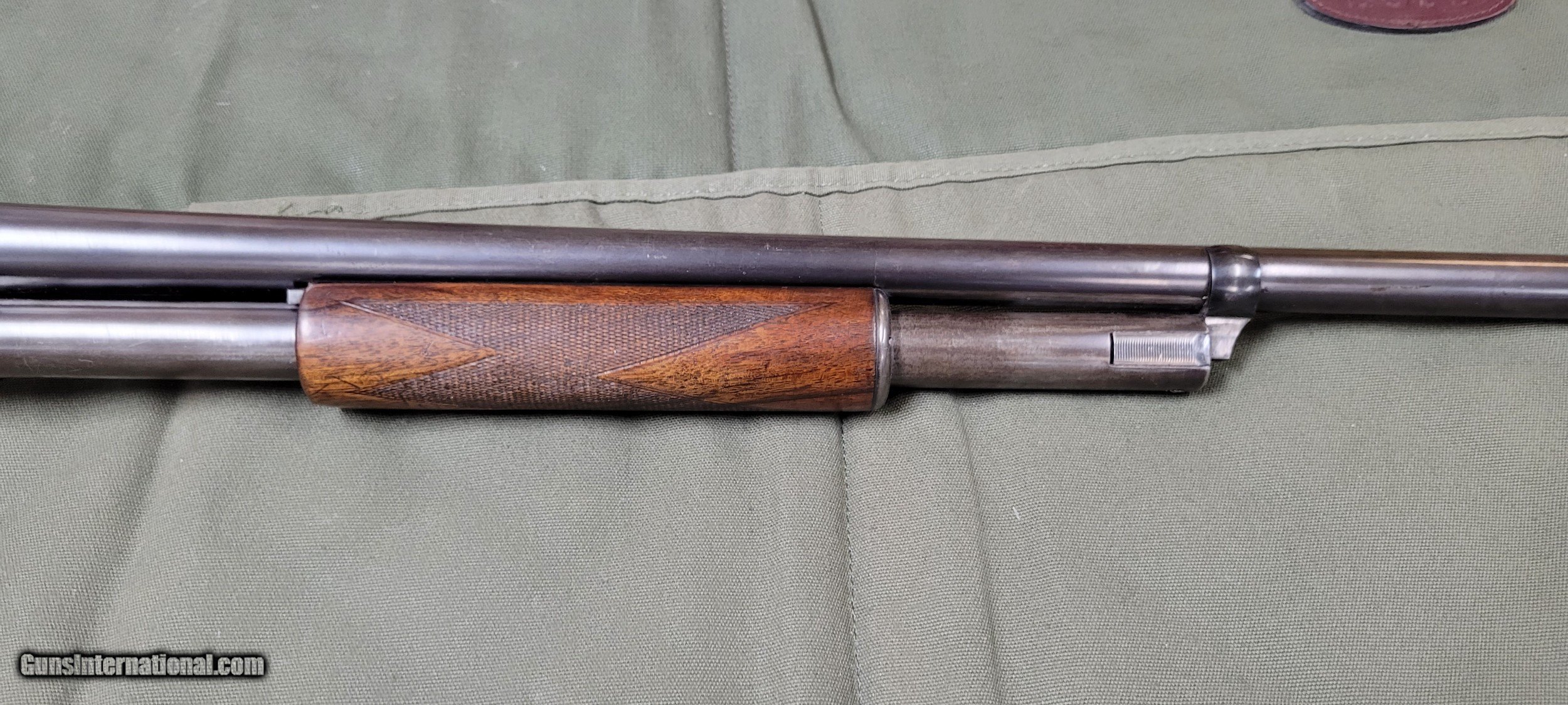 Description: Here is a dandy blast from the past. The shotgun has been used but not abused. It wears a 30", full choke barrel. LOP is original to the gun as is the buttplate. The checkering is worn more at the wrist than the forearm. I am not sure if it is from use or has been sanded but most likely form use. The last picture show the start of a chip just right of the top tang. Please call or email with any questions. WE TAKE CREDIT CARDS, DEBIT CARDS, MONEY ORDERS, CASHIER CHECKS, OR EVEN PERSONAL CHECKS.........AS LONG AS THEY'RE GOOD! 3% will be added to all charge cards. Sales tax will be charged unless you have a sales tax/resale permit. GUNS WILL BE HELD UNTIL PERSONAL CHECKS CLEAR. GUNS SUBJECT TO PRIOR SALE. There is a $50 shipping charge per gun and is NOT refundable. Insurance may be extra. Thank you, Darryl Howard SOLD |