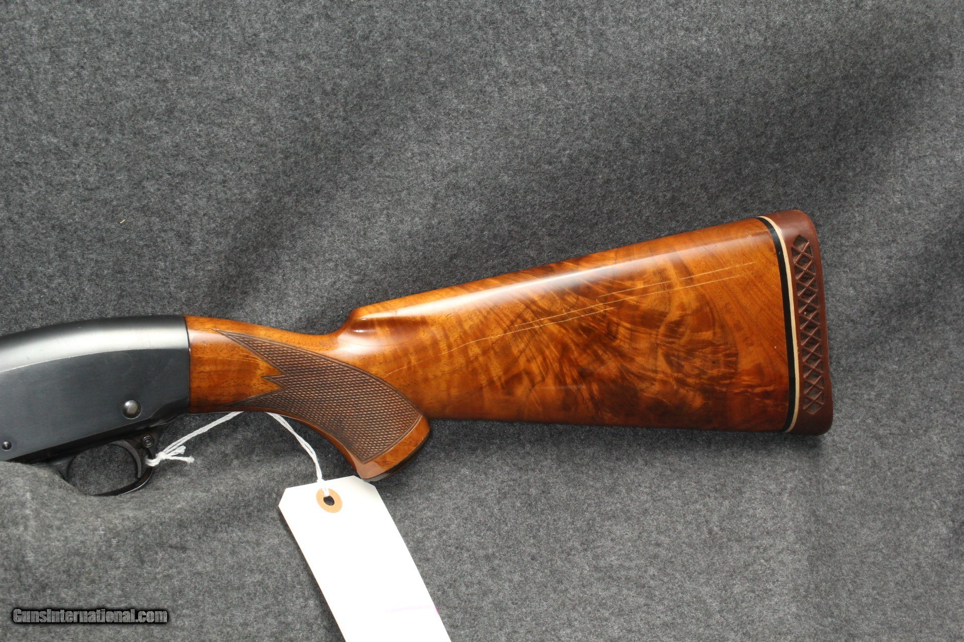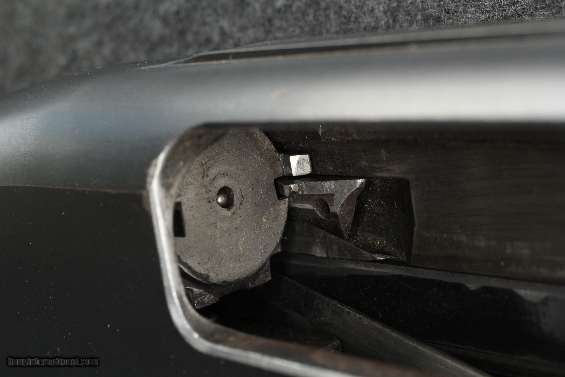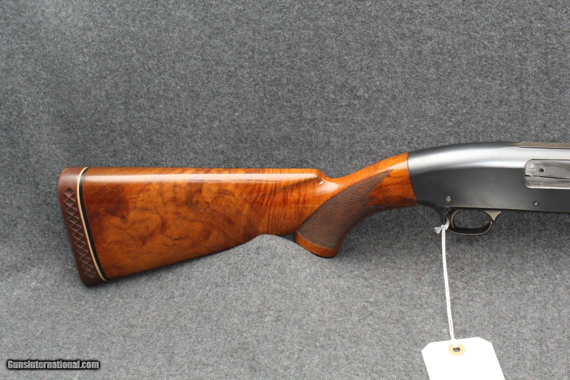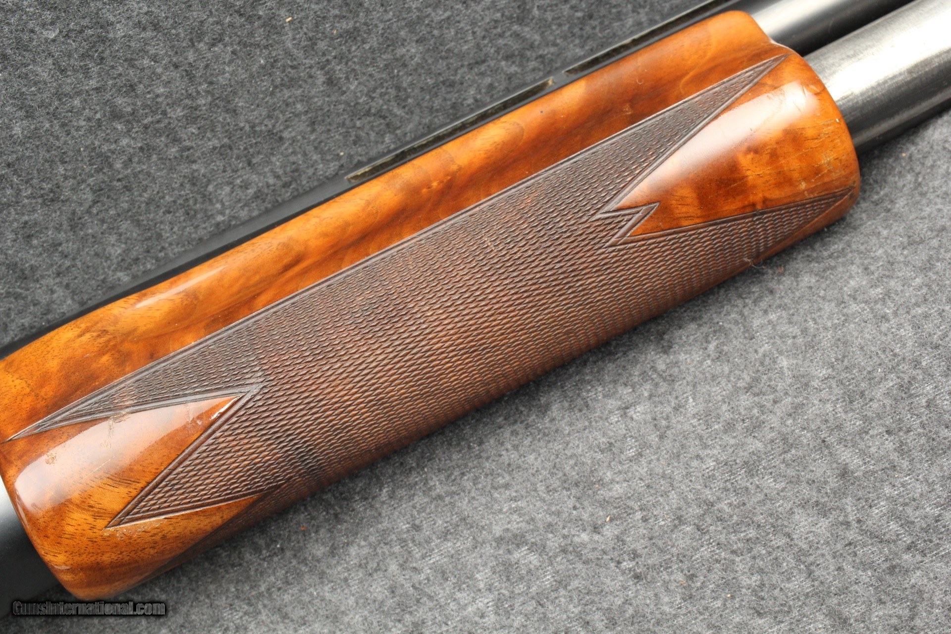 Description: Serial number 371XX. 12ga, 2 3/4" chamber, 30" VR barrel, fixed choke, open side of full. Non-original buttstock. Butt has notch for tang and this receiver does not have tang, see photos. Nicely figured walnut, flame grain. Pachmayr Whiteline recoil pad added. Correct grip cap. Chip at back of head. Crack radiating out from U-notch about 1/2". Receiver retains 95% blue, barrel retains 90%. Magazine tube shows normal wear pattern. Bore is excellent. More photos on request. Will ship to C&R. Please add $60.00 for shipping and insurance. SOLD Curio/Relic: Yes Shotgun Gauge: 12 Gauge |
