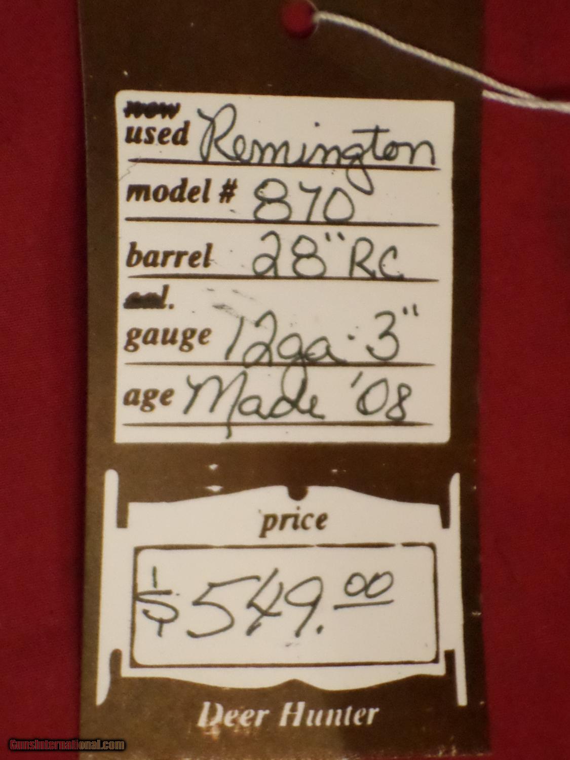Description: SOLD For sale, Remington 870, 12 Ga. 28" RC bbl. 3" magnum. Embellished frame. Excellent condition, Circa 2008 SOLD To see more of our inventory, visit deerhunterguns,com We accept MC, Visa and Discover, no AmEx. No Sales to California. Like us on Facebook: Deer Hunter Guns SOLD |