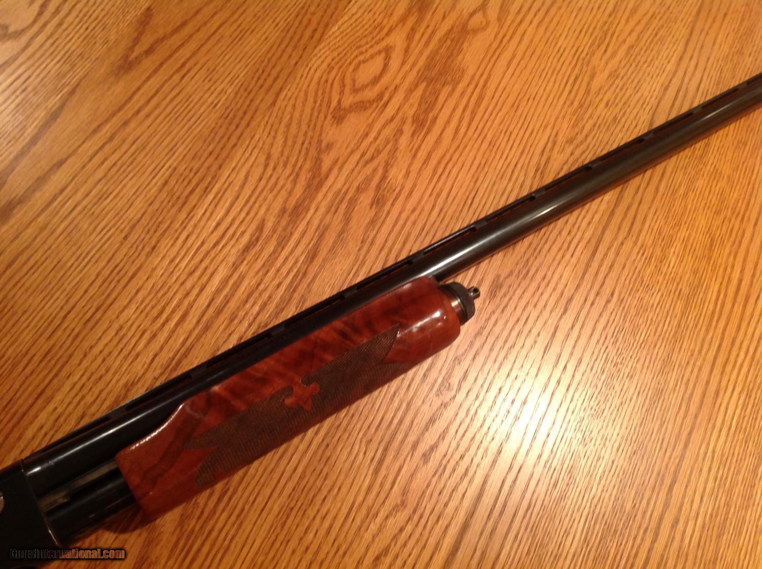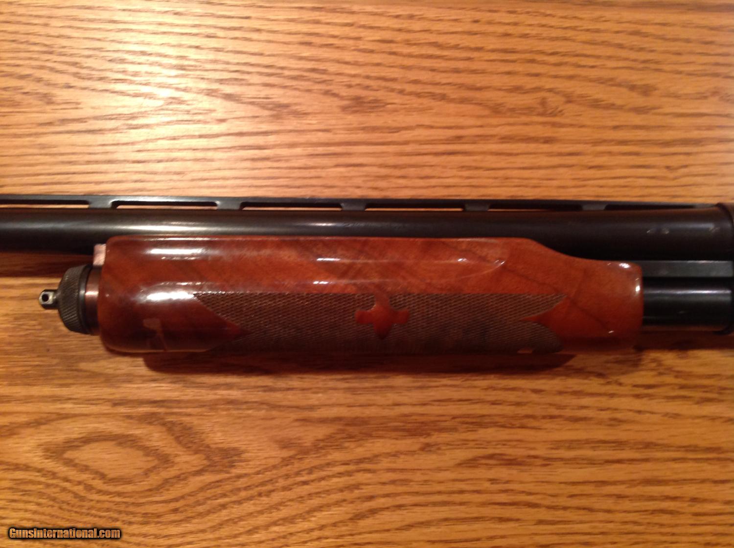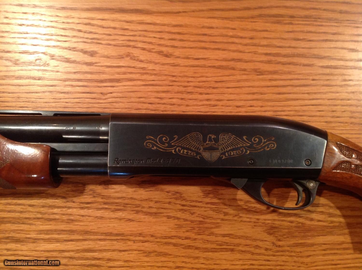 Description: Remington 870 Trap full choke 30" barrel. This gun is the 1776-1976 Centenial with the inlay on the receiver. This is a one owner gun purchased new. Gun was used for goose hunting from a blind and has a sling swivel installed in bottom of stock. Stock & forearm show minimal wear and bluing is app 90%. SOLD Manufacturer: Remington Model: 870 Centenial Trap Serial Number: T314378V Bore: Full Condition: Very good Metal Condition: 90% Wood Condition: Good Action: Pump Gauge Info: 12 |