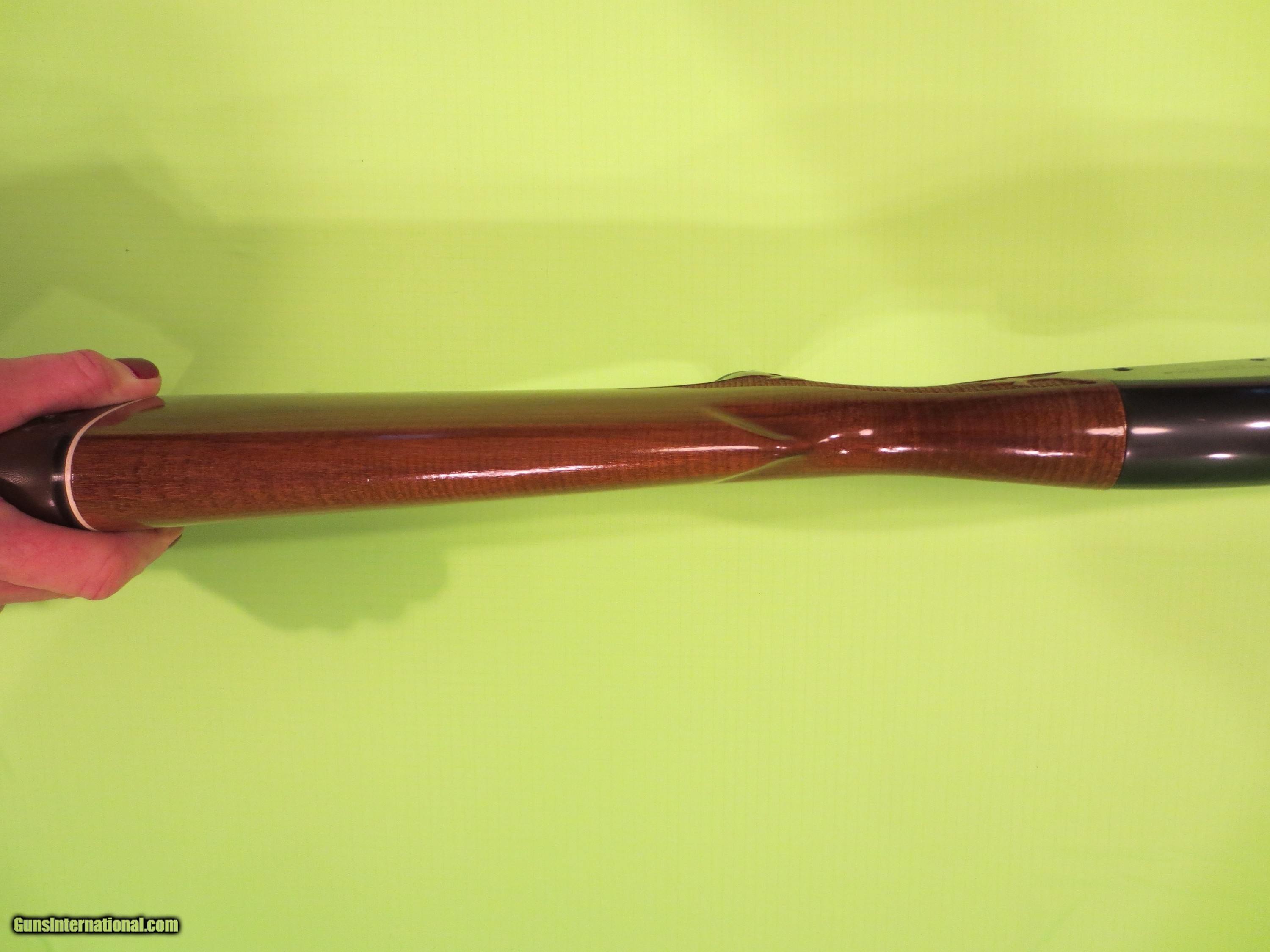 Description: Here is a nice 870 16 ga Wingmaster. Per the barrel code this gun was produced in November 1976. This example sports a 25 1/2” barrel with a vent rib and front bead sight. The barrel is a modified choke. The LOP is 13 3/4” trigger to the end of the factory Remington pad. Wood is near mint with just a couple of light marks. Bluing is a deep blue with a couple handling marks on the receiver. There is a number and initials lightly etched in small print on the underside of the barrel just in front of forearm (see pic). Shipping, insurance, packaging & handling is a flat $45.00 to the lower 48. In most cases, I ship USPS on Saturdays and Mondays. Be sure your FFL will accept a shipment from a non-FFL. If you require FFL to FFL shipping add $25 to total price SOLD Shotgun Gauge: 16 Gauge |