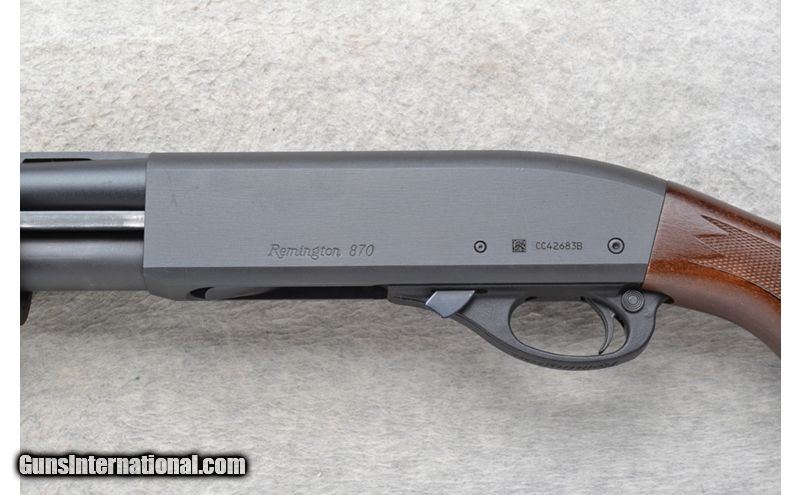 Description: This Remington Model 870 (youth) is a right hand pump action 20 Ga. shotgun. It has a 21 inch ventilated rib barrel. A metal front bead sight. In a 3 inch chamber it comes with one Full choke tube. The butt stock is a checkered grip walnut pistol grip. The forearm is a checkered grip walnut with finger grooves. 20 Gauge SOLD Chambers: Pump Action 2 3/4 inch or 3 inch. Metal Condition: Excellent with a couple of very minor handling marks. Wood Condition: Excellent with a few light handling marks. Bore Condition: Bright and shiny. Barrels: 21 inch barrel with a ventilated rib. Stock Dimensions: LOP 12 3/4 inches. Fore End: Checkered grip walnut with finger grooves. Butt Pad: Remington black rubber pad. Weight: 6 Lb. 6 Oz. Sights: Metal front bead. Chokes: Full choke tube. Item Location: Richfield, WI |