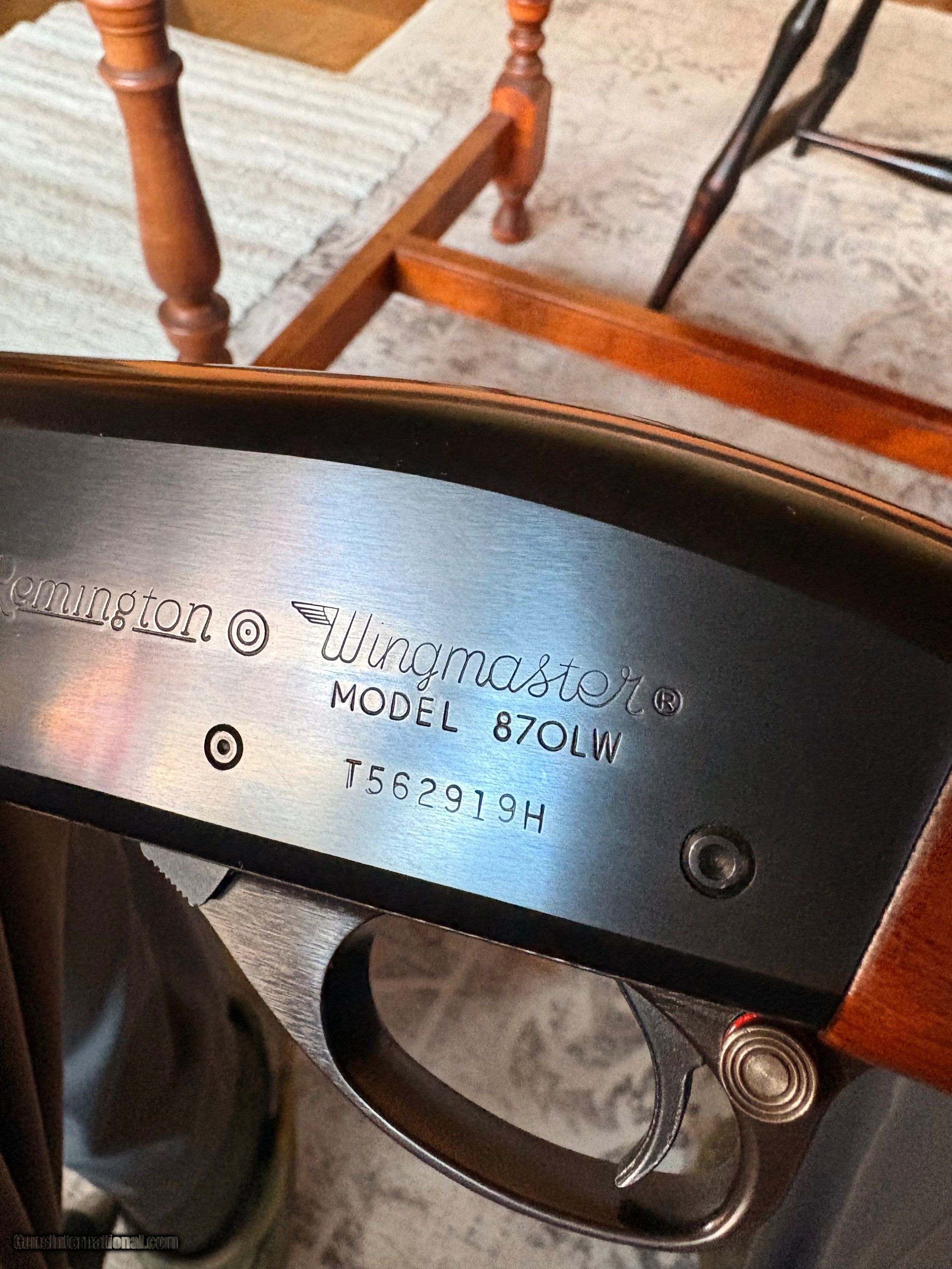 Description: This VERY NICE Remington model 870 Wingmaster LW 410 ga is listed for your consideration. I believe this gun was manufactured in 1975. Overall this gun maintains 99% + blue and stock finish. Trigger guard is turning plum color, as some of the older 870s did. Beautiful 870 with Full Choke. Hard to find a nicer 1975... 870. $ 2200.00 Shipped my FFL to your FFL Shipping $ 60.00. Any questions feel free... Shotgun Gauge: .410 Gauge Manufacturer: REMINGTON Model: 870 Barrel Length: 25 Bore Info: Perfect Chambers: 3in or shorter Condition: 99% Metal Condition: 99% Wood Condition: 99% Bore Condition: Perfect Action: Pump Triggers: Factory Stock: Factory Stock Dimensions: Factory Butt Pad: Factory LOP: 14 Rib: Vent Finish: Blue Sights: Metal bead Manufacture Date: 75-76 Chokes: Full Item Location: RI Price: $2,200.00 Contact Seller |