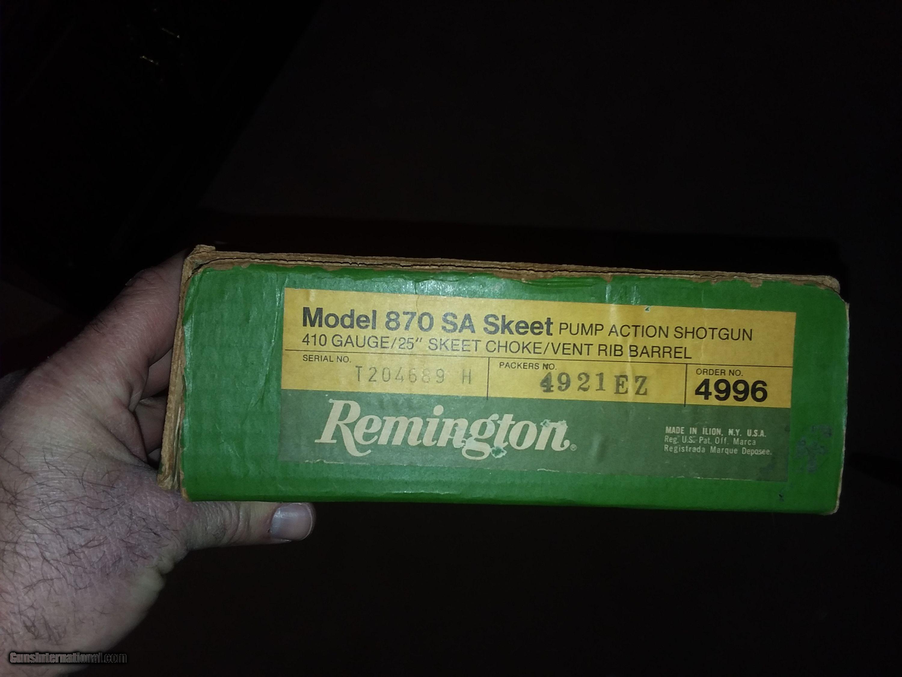 Description: Sale pending Remington 870 410 Skeet 26inch VR w box, lightly fired clean gun. SOLD |