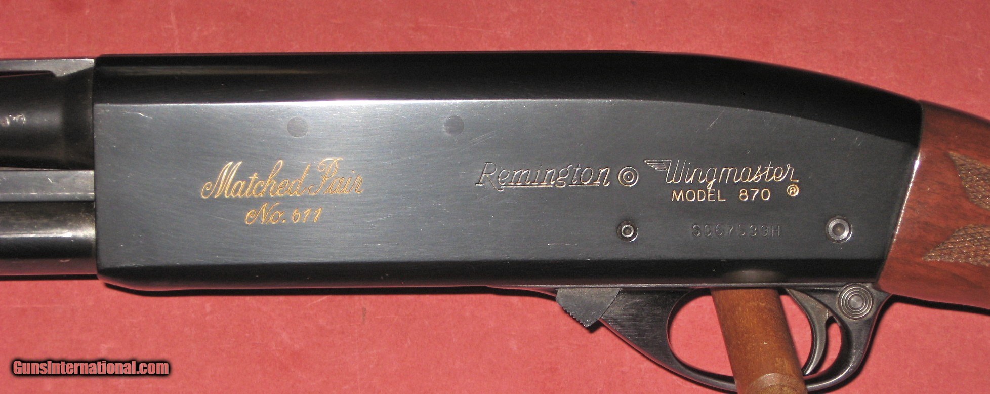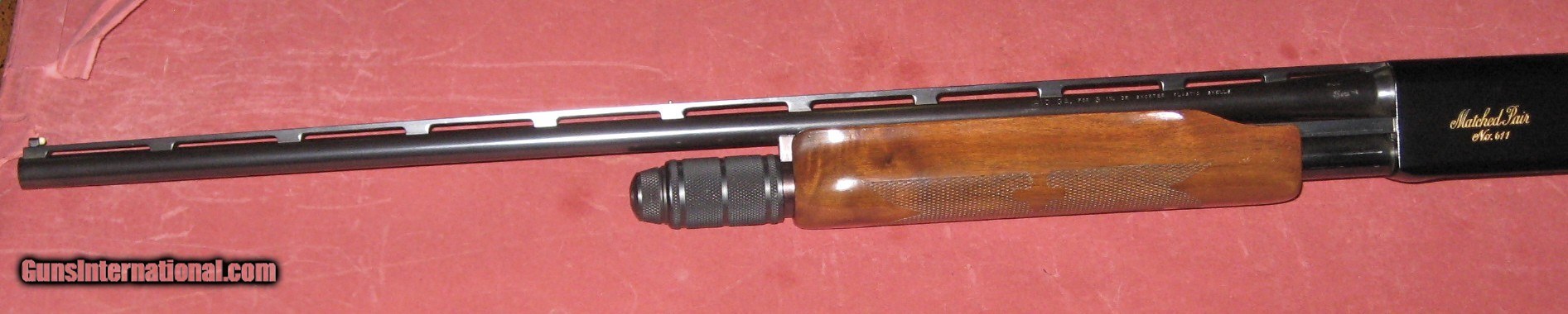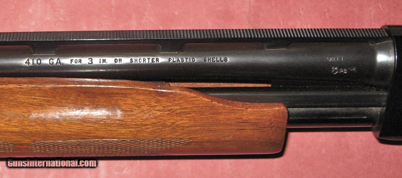 Description: Remington model 870 Wingmaster 410 out of a matched pair.This gun has a 25" vent rib barrel choked skeet.The gun is in mint all original condition.It retains 100% of the original blue and wood finish.The barrel is chambered for 3" or shorter shells.The gun has all of the correct weights.A shame that the pair got broken up,but this is a great gun on its own.Built in 1969.C&R eligible. SOLD Curio/Relic: Yes Manufacturer: Remington Model: 870 Serial Number: S067539H Chambers: 3 Metal Condition: mint Wood Condition: mint Bore Condition: mint Action: pump Gauge Info: 410 Butt Pad: factory recoil pad Manufacture Date: 1969 Chokes: skeet |