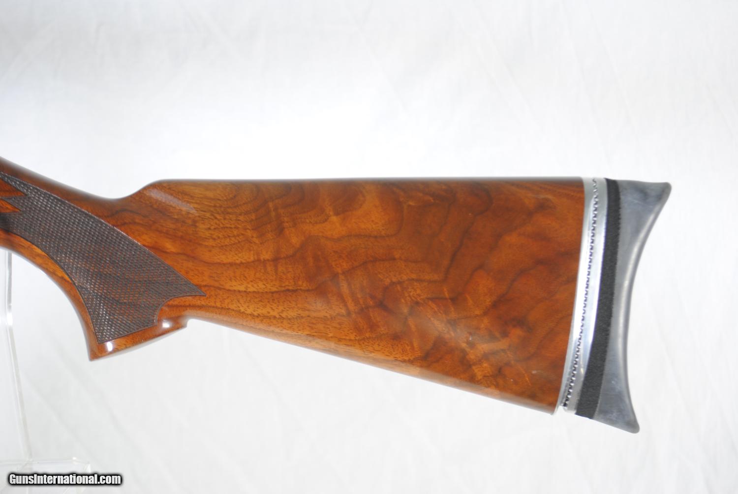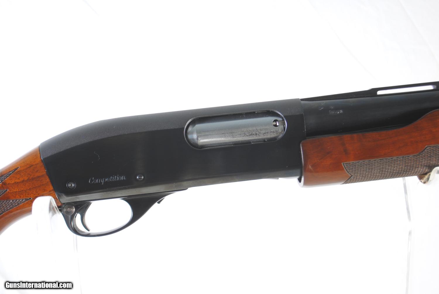 Description: Here is the limited production Remington 870 Competition. This is a single shot pump action with a recoil absorbing piston in the mag tube. Very sought after by serious trap shooters. Special factory overboring and choking. The bore measures .745 with 40/1000 choke (FULL). Weight of gun is 8 LBS 12 5/8 OZ. Stock has a Morgan adjustable recoil pad and downpitch for comfort. Shipping is $40. Stock dimensions follow. LOP - 14 3/16" Drop at Comb - 1 3/8" Drop at Heel - 1 3/8" For inquires please call Guy Ave - 407-721-3748 SOLD |