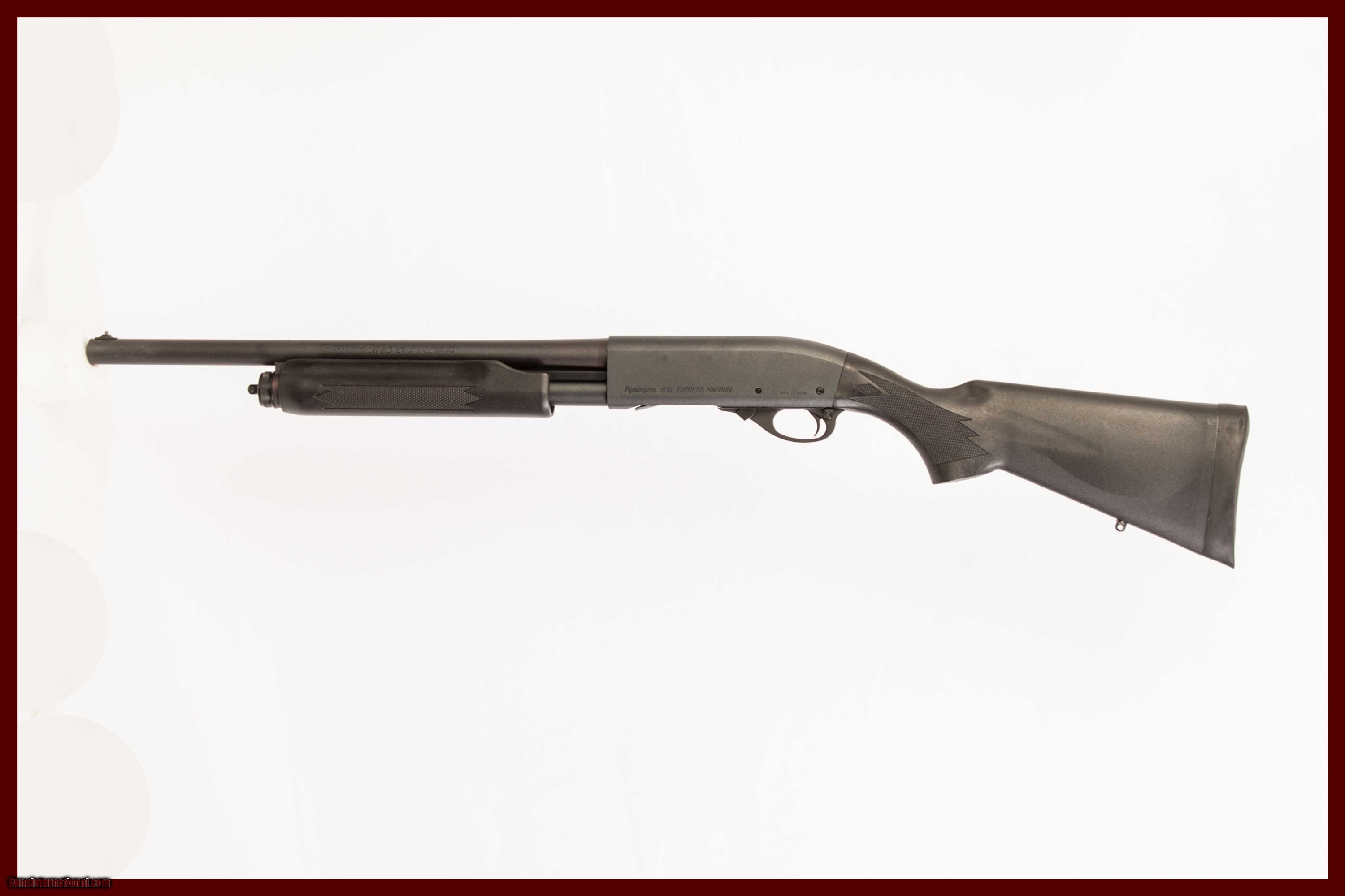 Description: Remington 870 Express Magnum chambered for 12 GA shells with an 18 inch barrel bright bore and a black synthetic stock. This gun is in excellent condition and is covered by Dury's Lifetime Warranty.