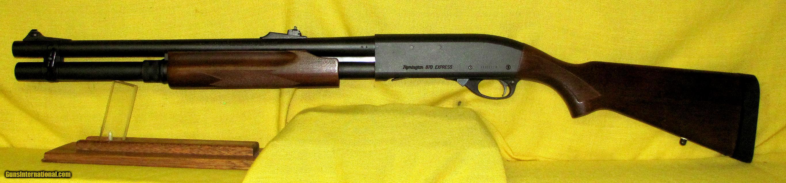 Description: REMINGTON model 870 EXPRESS in 12 GA CAL., with 20" barrel. Color MATTE. REMINGTON MODEL 870 EXPRESS, EXTENDED TUBE, BORE EXCELLENT, STOCK AND FOREARM EXCELLENT, RIFLE FRONT AND REAR SIGHT, TAKES 2 ¾” SHELLS, LIKE NEW CONDITION. OUR NEW STOCK # D31598 Condition 98%+. Serial number X153181M. SOLD |