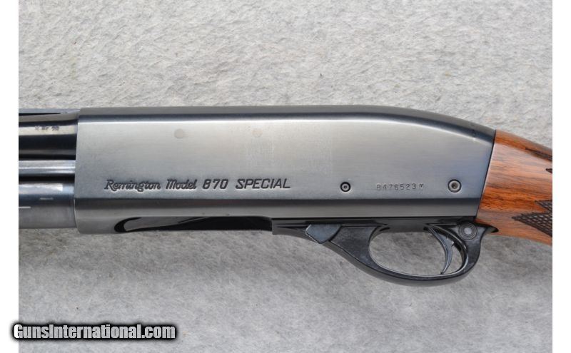 Description: This classic Remington Model 870 Special is a slide action 12 Ga. shotgun. It has a 23 inch ventilated rib barrel with one choke tube and 3 inch chamber. It has a very nice looking walnut straight grip butt stock. In overall excellent condition it comes as is. No box. SOLD Caliber Info: 12 Ga. Chambers: 2 3/4 inch or 3 inch. Metal Condition: Excellent. A couple minor handling marks. Wood Condition: Excellent with a couple of minor handling marks. Bore Condition: Bright and shiny. Barrels: 23 inches with a ventilated rib. Stock: Diamond checkered grip walnut straight stock. Stock Dimensions: LOP 14 1/8 inches. Fore End: Diamond checkered grip walnut with finger grooves. Butt Pad: Remington rubber recoil pad. Weight: 7 lbs. 4 oz. Sights: White bead front. Metal middle bead. Chokes: Tube. Item Location: Richfield, WI |