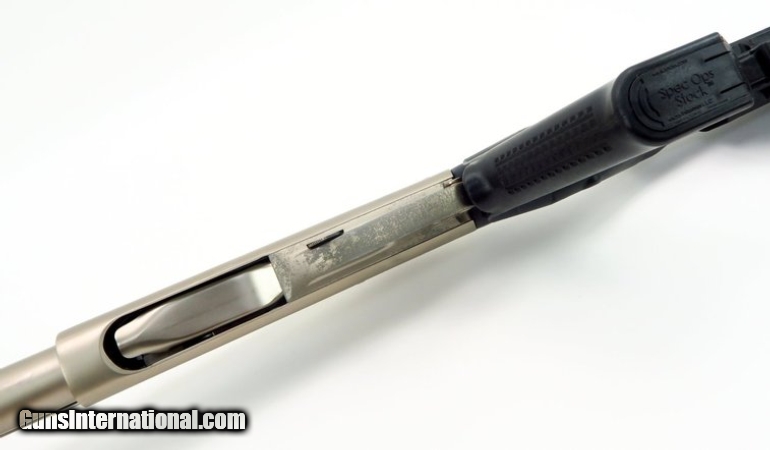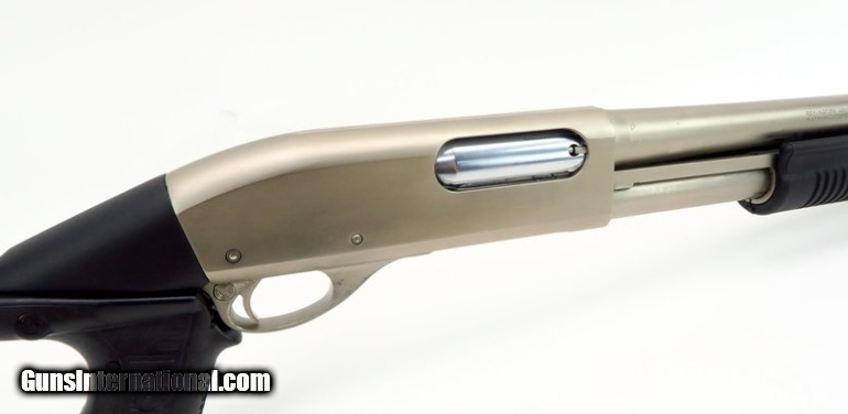 Description: Remington 870 Wingmaster 12 Gauge shotgun. Customized riot gun with satin nickel finish and Knox tactical stock in very good condition. SOLD |