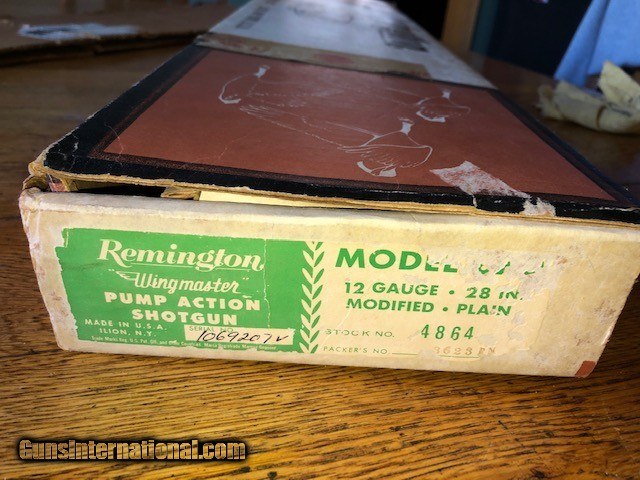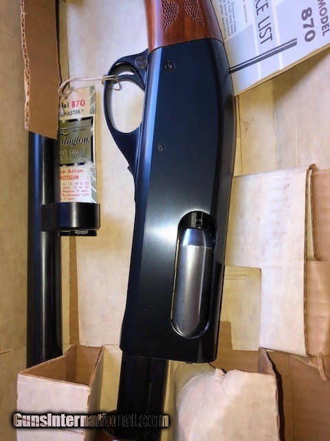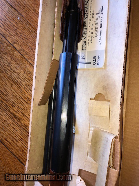 Description: Up for your consideration is safe Queen since November 1966 , Remington 870 Wingmaster .12ga , Serial# 106920V , 28" modified , plain barrel with silver bead front sight . This is New Old Stock , never fired . Not much I can say , its pretty , very nice . Its 100% . Bolt face never seen carbon .She has a barrel code of , RN , ( as pictured ) which translates to November , 1966 .which matches up to the serial # on the receiver,. Bluing and Wood as new . Box is solid with documents , Original box numbered to the receiver . These early 870 Wingmasters were just the best of the best . Shotgun now on , penny , Thanks for looking , SemperFi , John Sold SOLD |