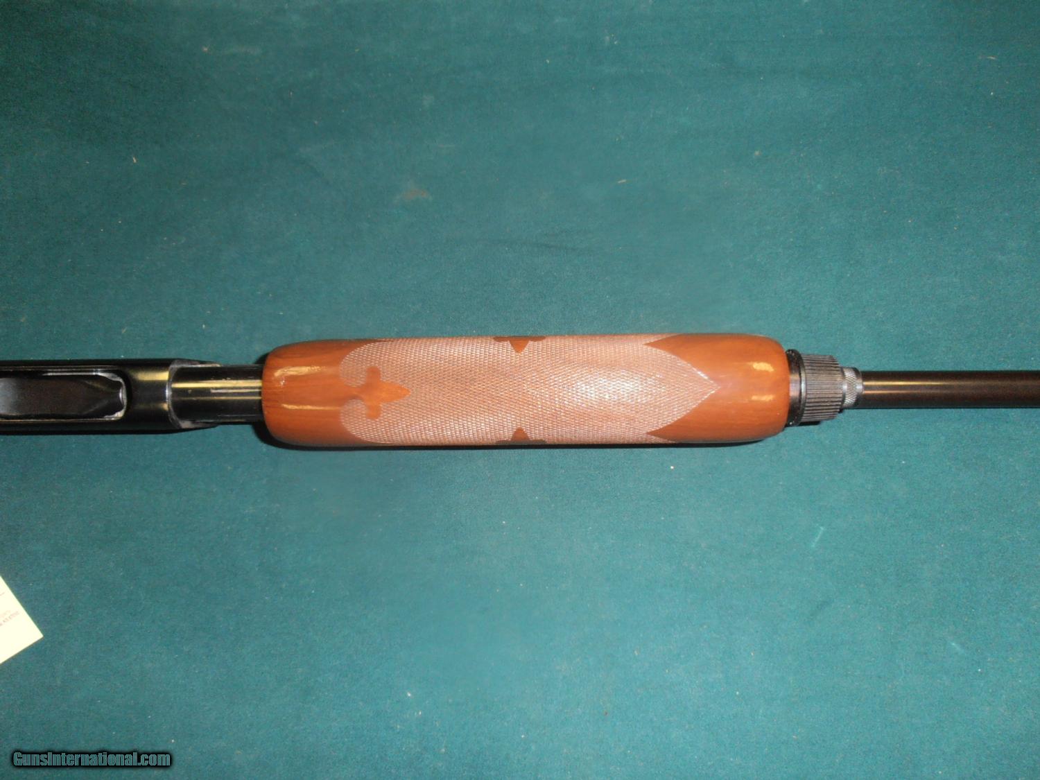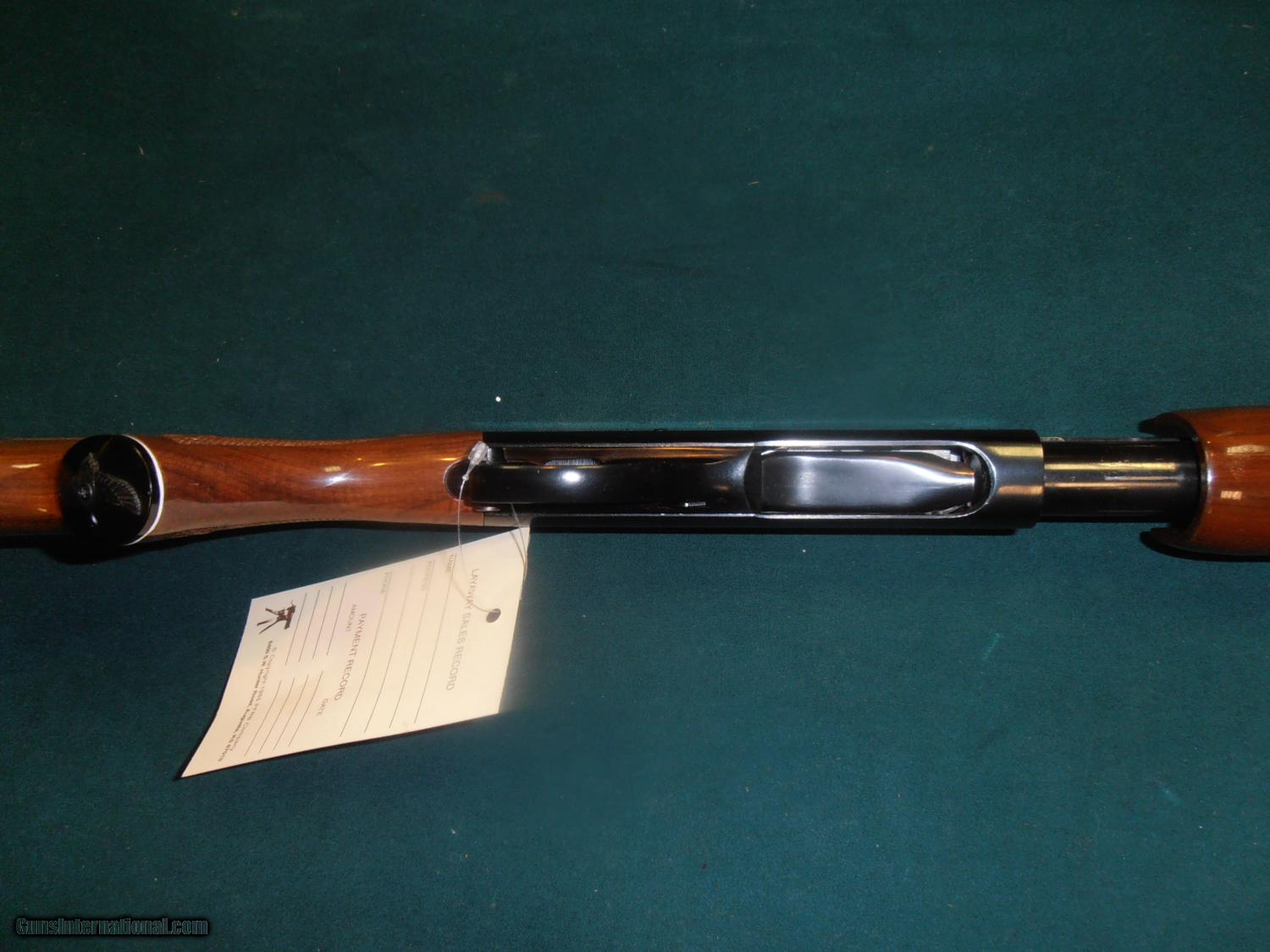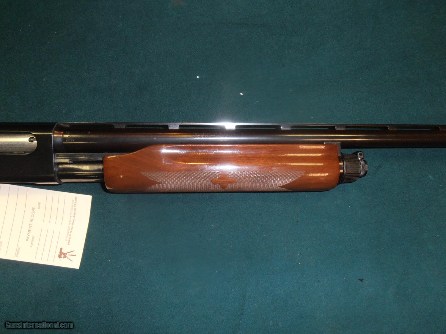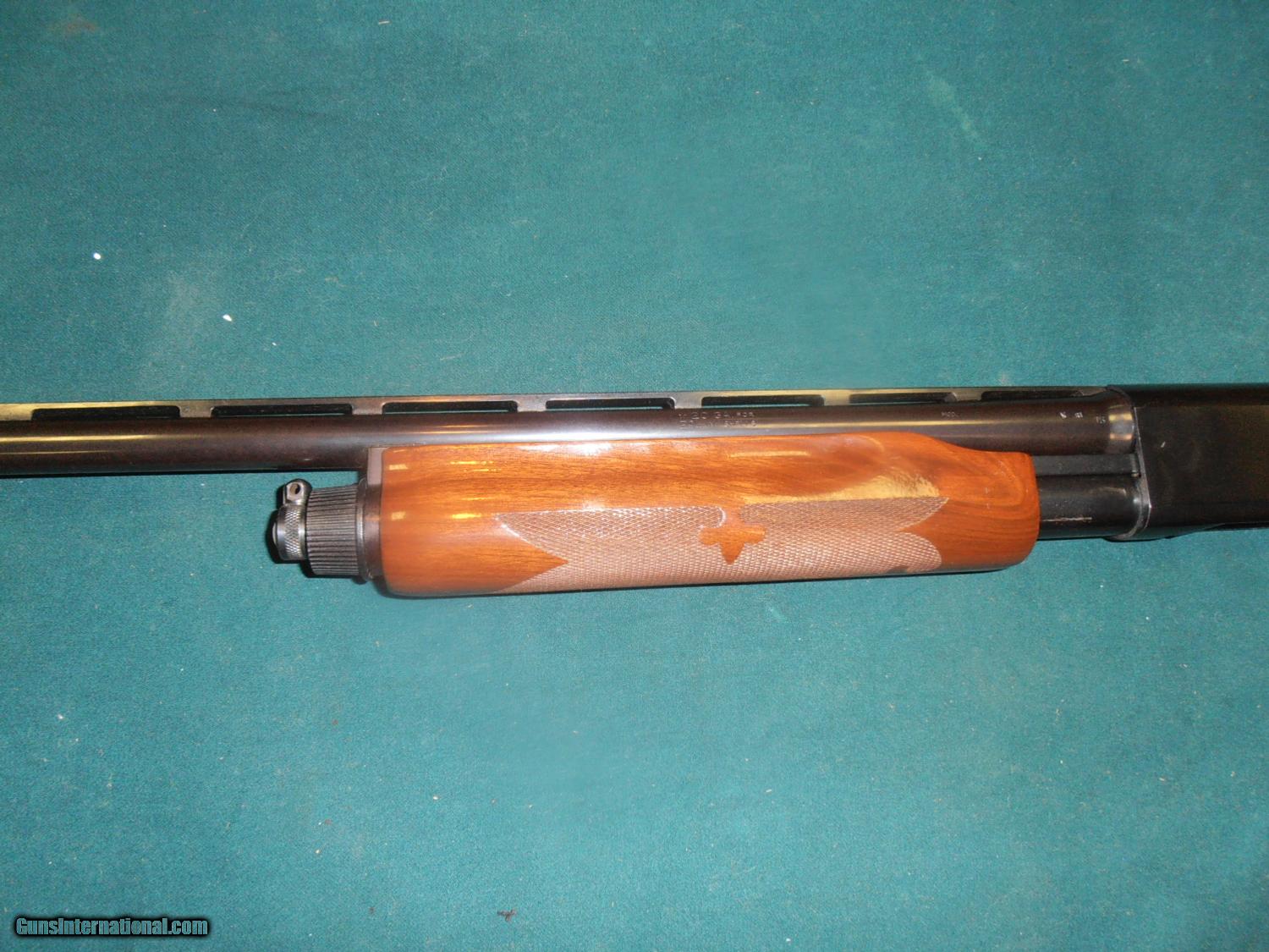 Description: Remington 870 Wingmaster, 20ga, 28" with factory vent rib with fixed Mod choke. Factory finish on both wood and metal, clean gun. SN is T6425xxX. Email me if you would like these pics sent to you, they will come through bigger and better than on the listing page here. Email me with any Beretta, Benelli, Sako, Franchi, Stoeger, or Uberti needs. Email me with any questions. I am a store front dealer, and I will close s if the gun sells locally. Once ahas reached my reserve, I will pull it from my shelves. Please check your local laws to confirm it is legal to own in your state! Buyer pays $25 shipping and insurance to your FFL, in the lower 48. AK, HI or PR is extra. I will ship to California, NO PROBLEM! All my guns come with a non firing, 3 day unconditional return privilege, from the day UPS delivers to your dealer. Buyer pays shipping both ways if the gun comes back. I can add a new hard case by PLANO for secure shipping for $25 if the buyer wishes (highly recommended, cheap insurance, really helps keep the UPS monster from eating my guns!). No sales tax on guns ship out of Kansas, guns sold in Kansas are subject to Kansas sales tax. I am a licensed FFL, and will include a copy of my FFL with the gun for your dealers records. I will ship to a C&R if the gun is eligible (you look it up!). I will ship to California, but you need to confirm the gun is legal where you are, California or other. I am always looking for good clean, old original Winchesters to buy, consign, or trade, especially pre '64's model 70's and model 54's. WE ALSO TRADE FOR CLASSIC CARS AND TRUCKS! I will leave feedback as soon as the buyer leaves feedback on me. Email me with any questions, and good luck! SOLD |