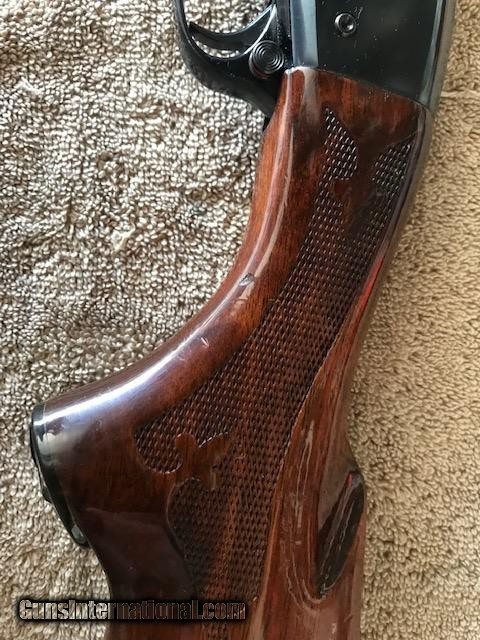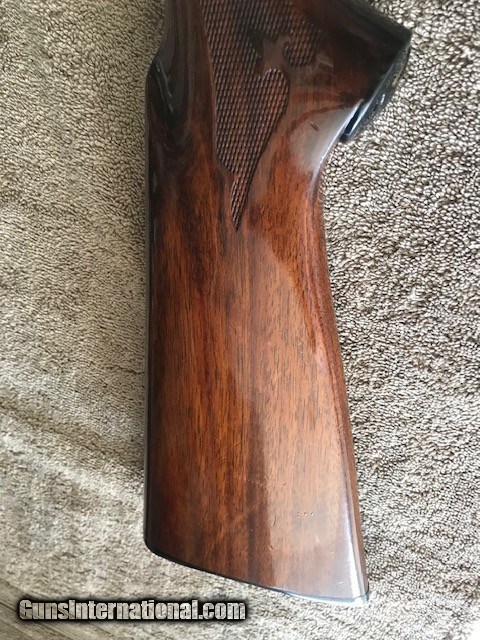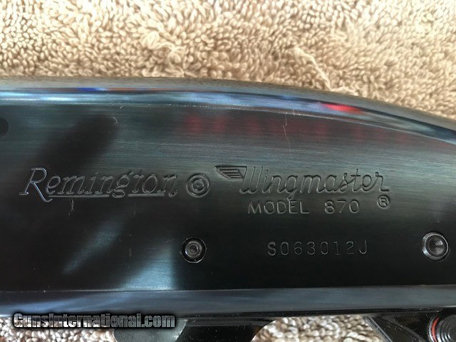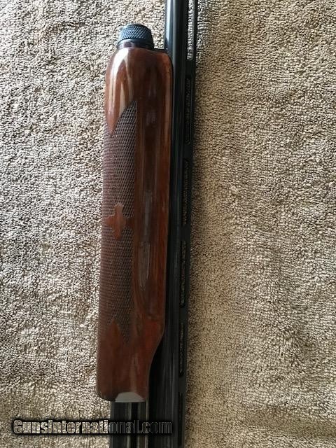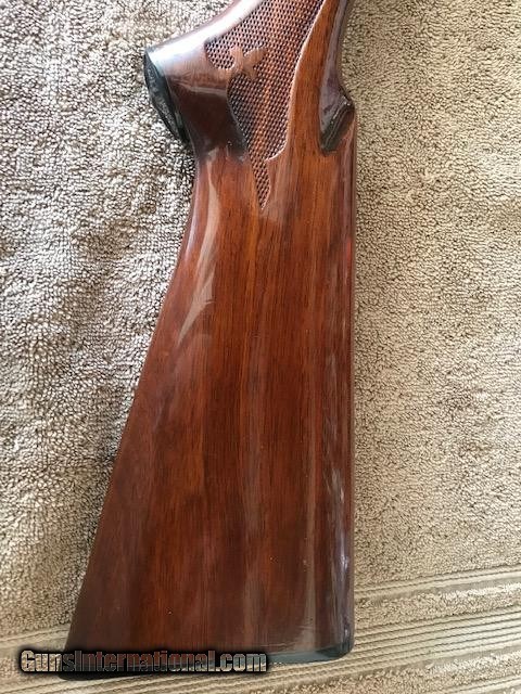 Description: All original 1969 ( P S barrel code) Remington 870 Wingmaster, 28 gauge, on the scarce, original Light Weight frame. ("J" suffix ). 6 lbs. 25" Vent Rib barrel, Mod choke, perfect bore. 012 constriction throwing beautiful even patterns. Single silver bead, Chrome Lifter Beautiful Mahogany stock with minor handling / usage marks. 14" LOP to makers original ButtPlate Blueing loss on Action Bars and Receiver bottom commensurate with age. Used but not abused, perfect function from loading to ejection. $old Pending Funds SOLD |