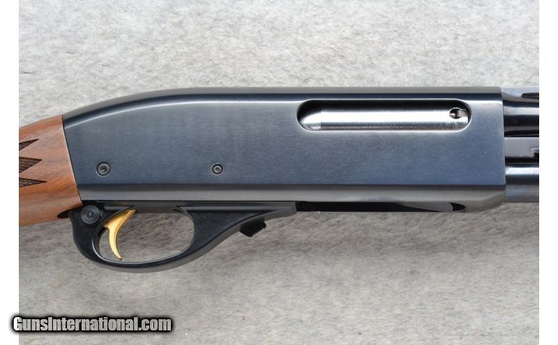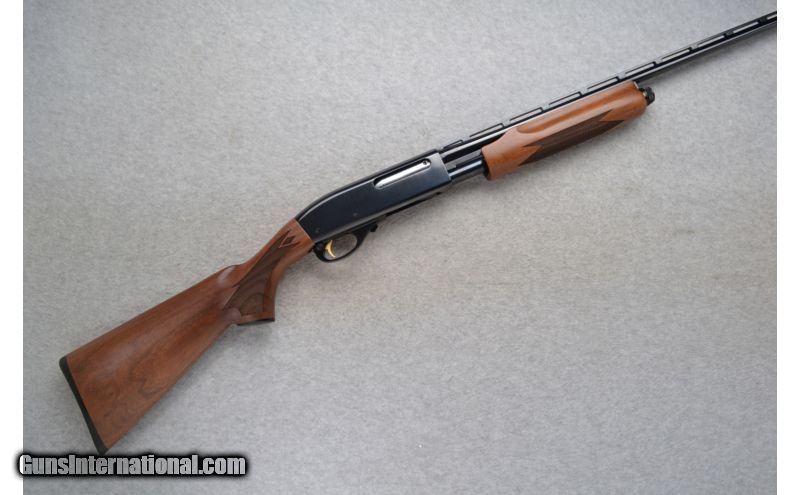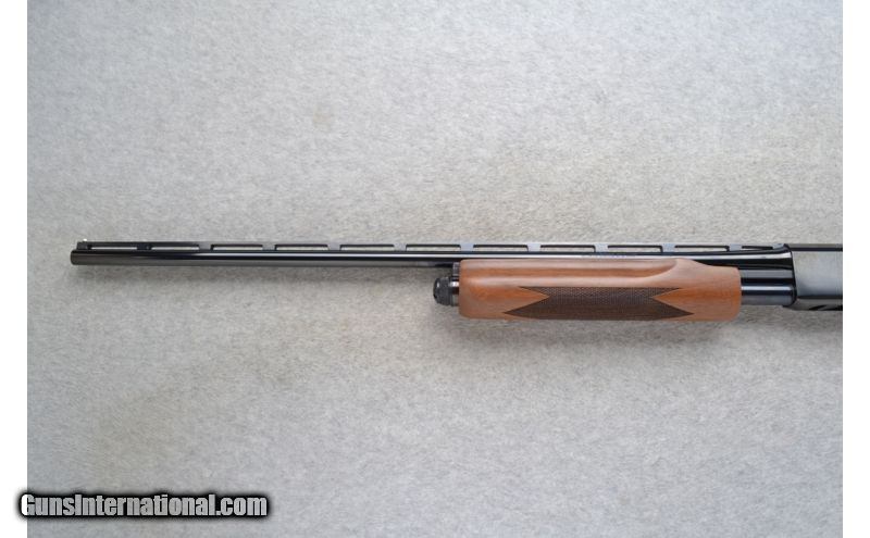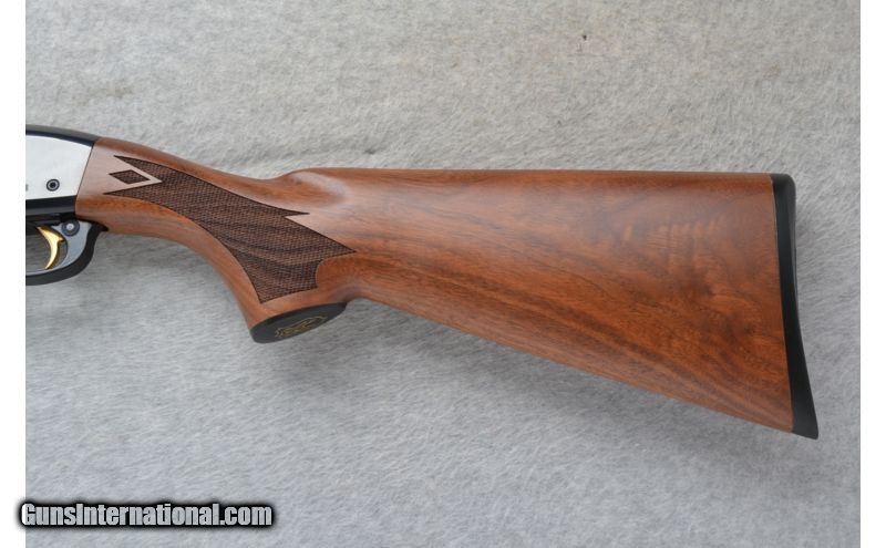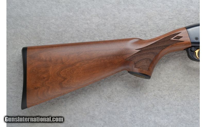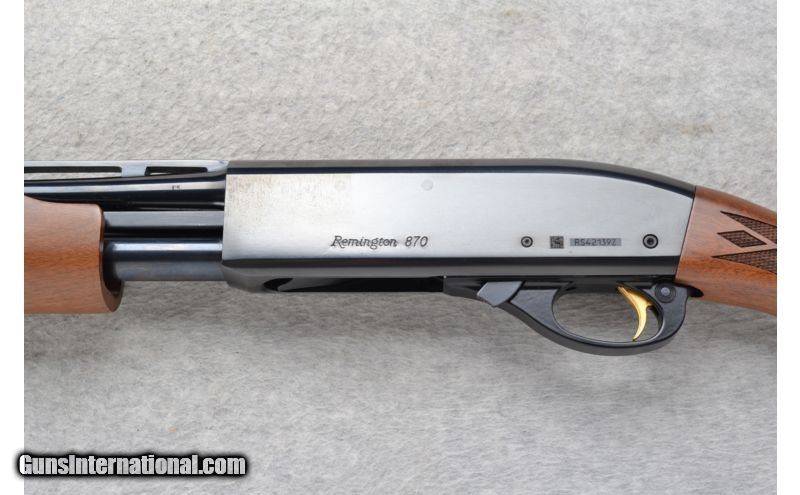 Description: This Remington Model 870 Wingmaster is a right hand pump action shotgun in .410 Bore. It has a 25 inch ventilated rib barrel in 3 inch chamber and fixed Modified choke. A white bead front sight and metal middle bead sight. The stock is a checkered walnut pistol grip. This gun is in New In Box condition. SOLD Caliber Info: .410 Bore Chambers: Pump Action 2 1/2 inch or 3 inch. Metal Condition: Excellent. Wood Condition: Excellent. Bore Condition: Excellent. Barrels: 25 inch blued with a ventilated rib. Triggers: Golden. Stock: Checkered walnut pistol grip with a black cap. Stock Dimensions: LOP 14 1/8 inches. Fore End: Checkered grip walnut with finger grooves. Butt Pad: Remington checkered black plate. Weight: 6 lbs. 10 oz. Sights: White bead front. Metal middle bead. Chokes: Fixed Modified. Extras: Comes in a box with Owners Manual and cable gun lock. Item Location: Richfield, WI |