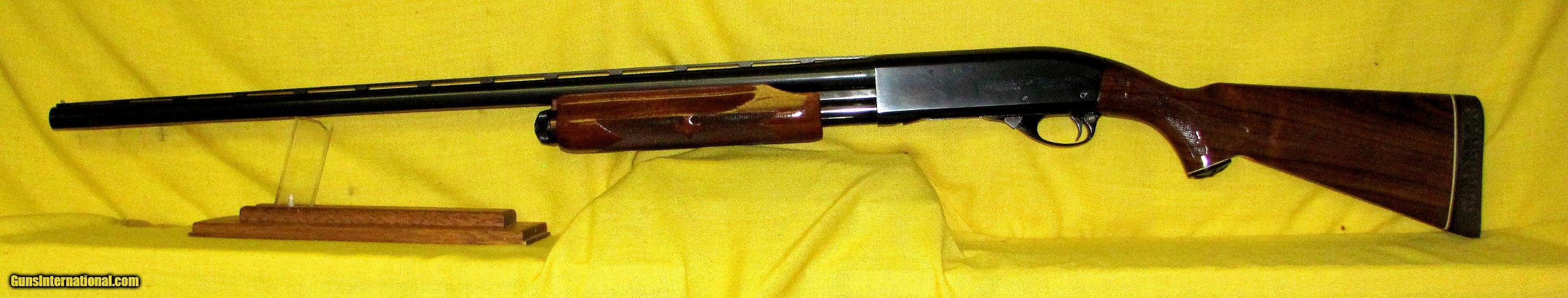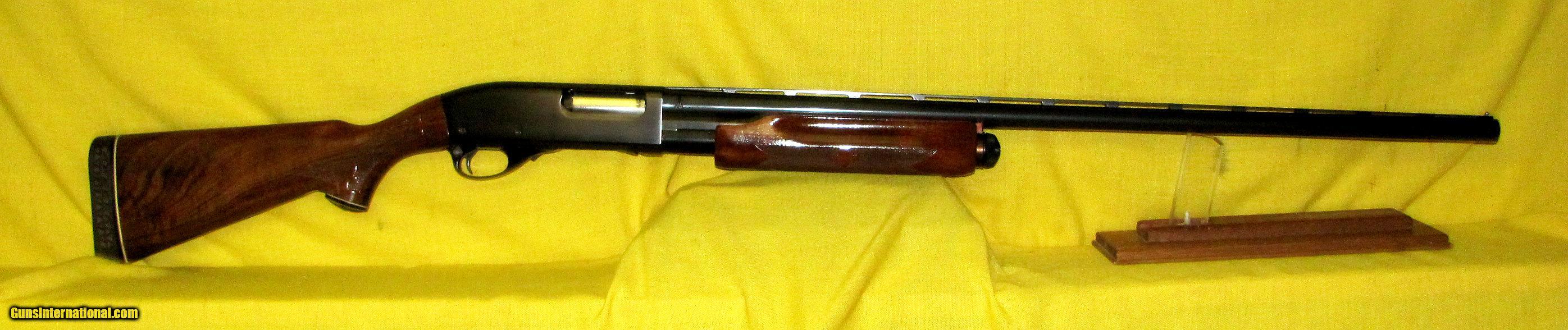Description: REMINGTON model 870 WINGMASTER in 12 GA CAL., with 30" barrel. Color BLUE. REMINGTON MODEL 870 WINGMASTER PUMP, COMES WITH A 30” SINGLE BEAD VENT RIB FIXED FULL CHOKE MIRROR BORE BARREL, 98%+ FACTORY FINISH, EXCELLENT HIGHLY FIGURED WOOD, 2 3/4" CHAMBER, LIKE NEW CONDITION. OUR NEW STOCK # D31726 Condition 98%+. Serial number T532496Y. SOLD |