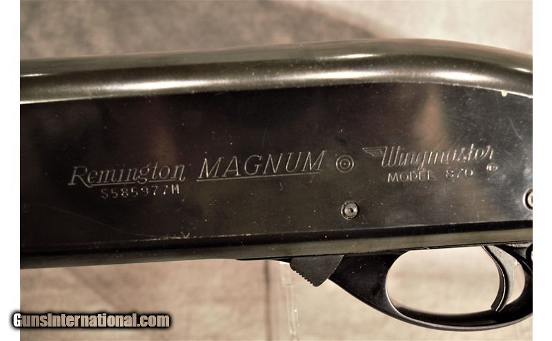 Description: This 870 Wingmaster has blued steel receiver and barrel with a high gloss finish on a walnut stock and is a popular choice among trap & skeet shooters or upland bird hunters 12 Gauge SOLD Metal Condition: Very Good some rust on mag tube Wood Condition: Excellent Barrels: 28 Butt Pad: Rubber Remington Butt Pad Sights: Dual Bead Chokes: Modified Item Location: Chesterfield, MI |