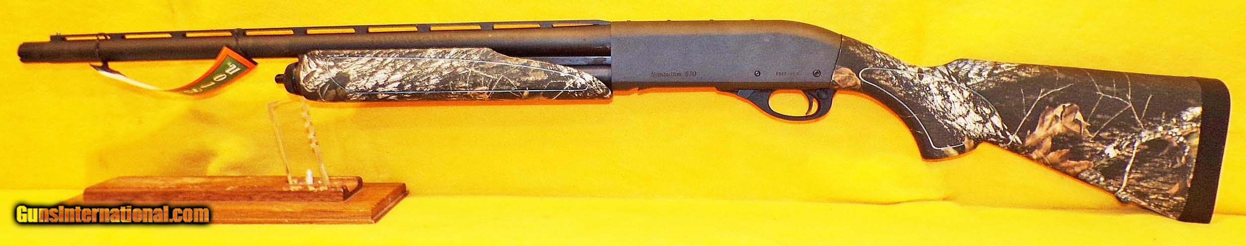 Description: REMINGTON 870 IN 12 GA. CAL., WITH 21" BARREL. COLOR CAMMO. CONDITION NEW IN BOX. SERIAL NUMBER RS48146B. REMINGTON MODEL 870 PUMP IN 12 GAUGE, NEW SINGLE BEAD VENT RIB CAMO BARREL WITH SCREW IN TURKEY CHOKE, FACTORY DRILLED AND TAPED RECEIVER, BOX AND PAPERS, NEW IN BOX OVERALL CONDITION OUR STOCK # D1721 SOLD |