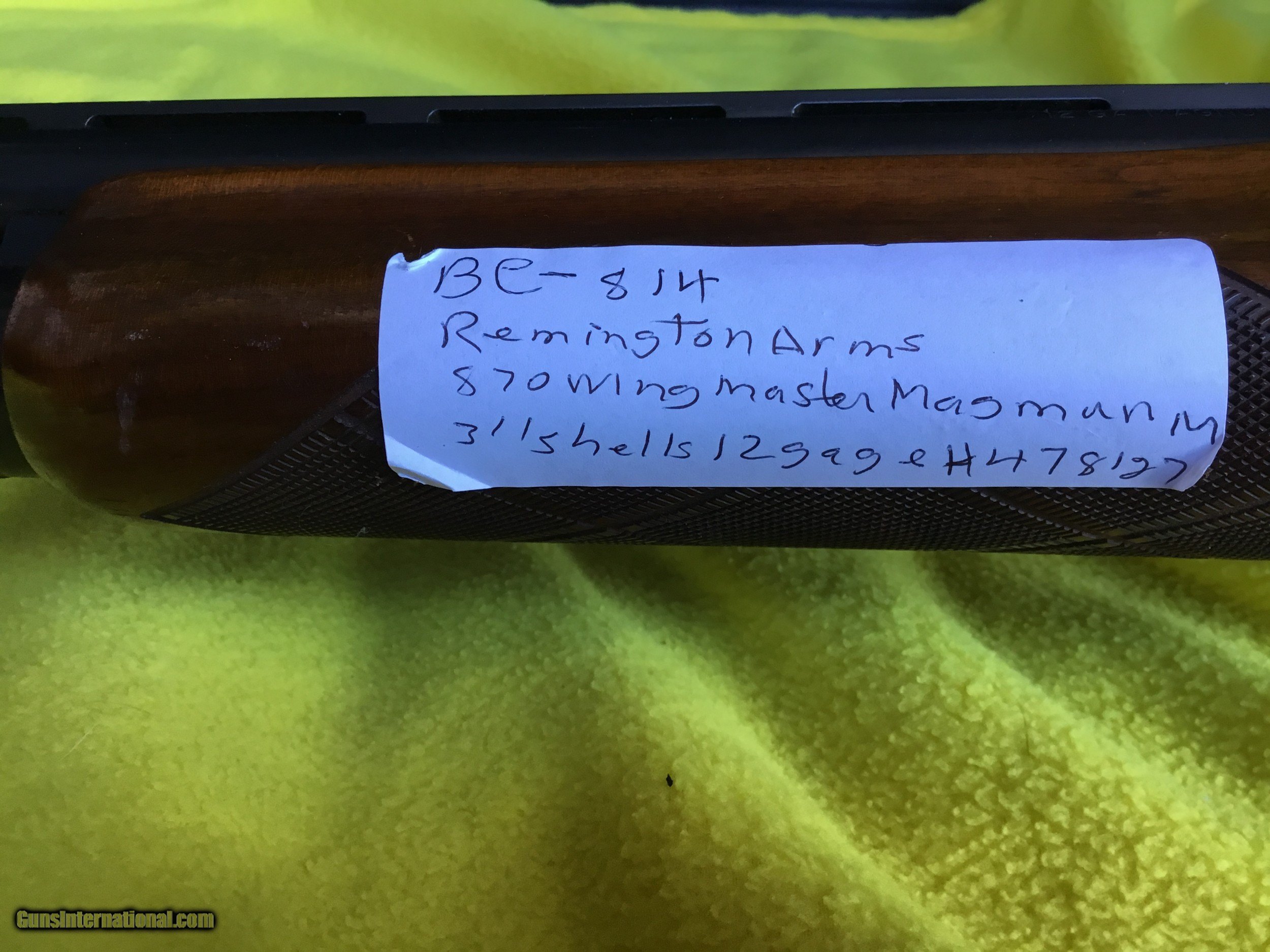 Description: Remington Arms Wing Master 870 12 gauge magnum 3 inch shells condition is 95.% stock and forearm . $599.00 plus $60.00 S/H 4% for credit cards SOLD Shotgun Gauge: 12 Gauge Manufacturer: Remington Arms Model: Wing Master Serial Number: 478127M Condition: 98 Wood Condition: 98% |