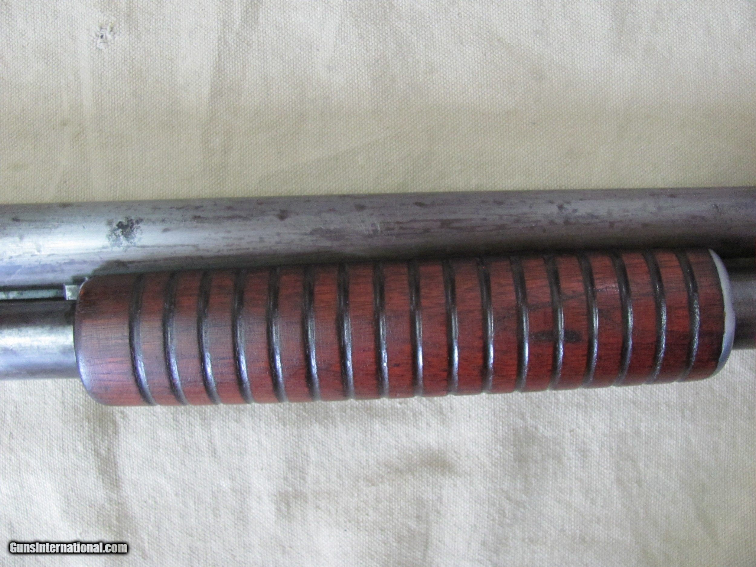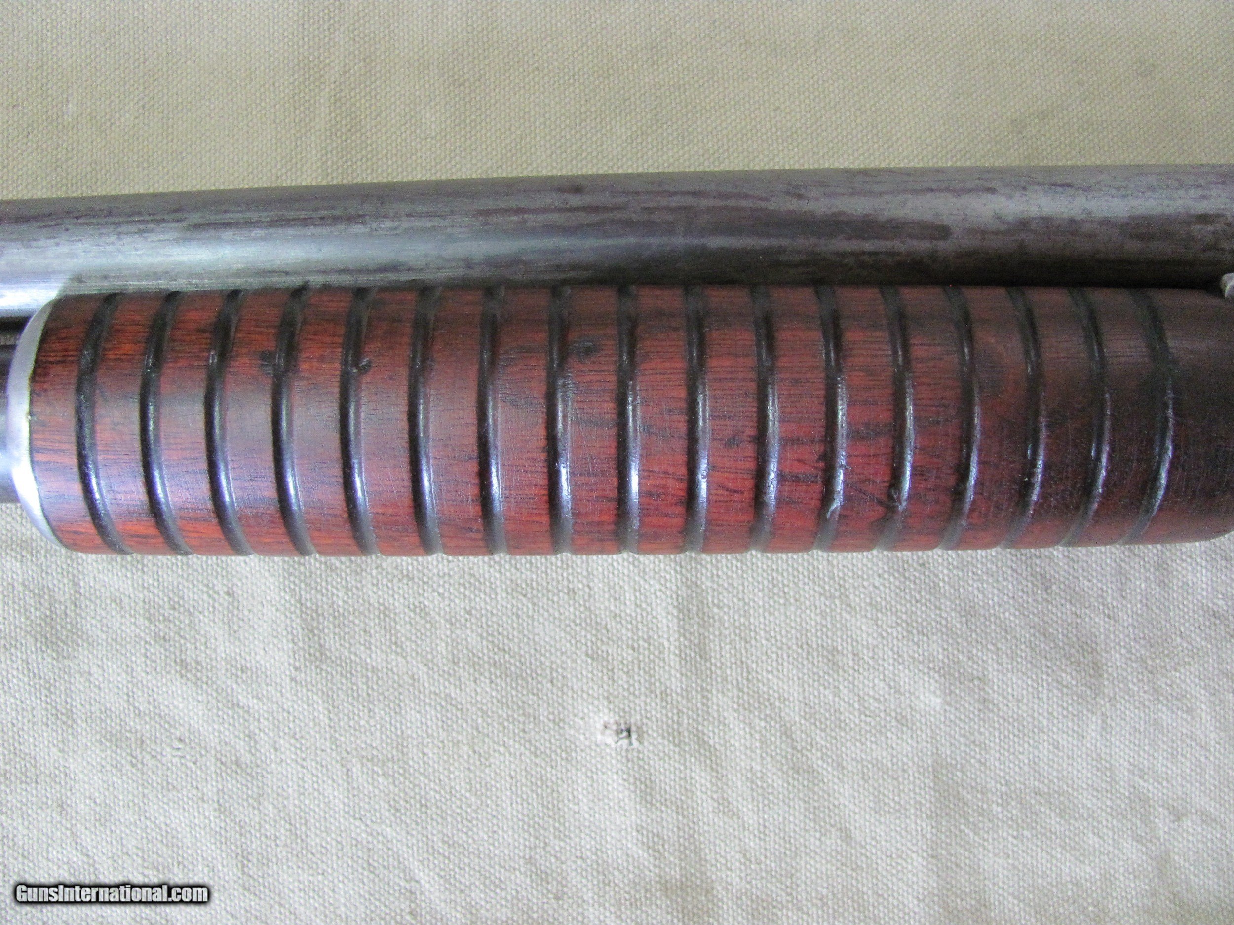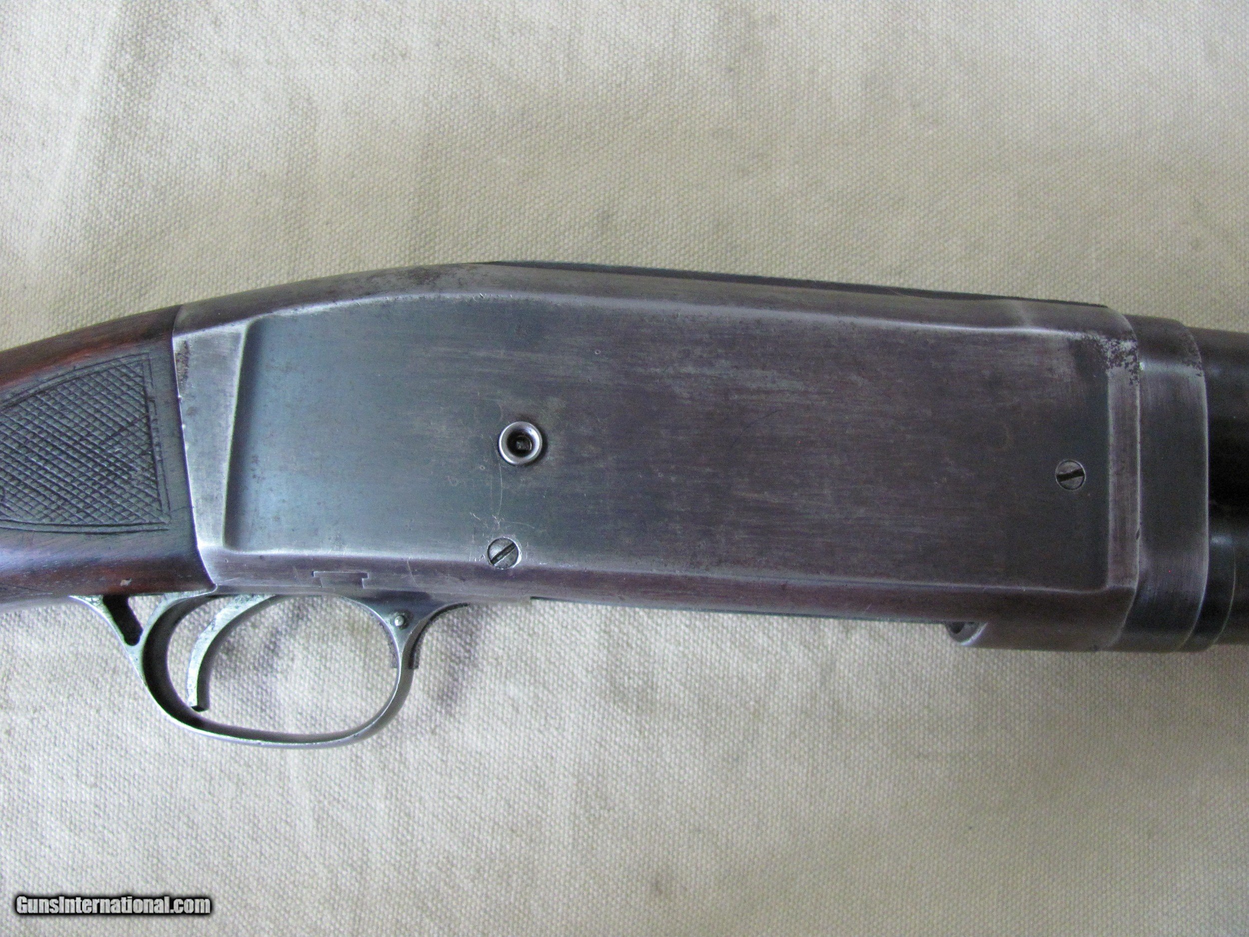 Description: THIS IS A REMINGTON MODEL 10 12GA PUMP SHOTGUN SHE WILL CHAMBER 2-3/4” 12GA ROUNDS THE BLUE FINISH IS ALL BUT GONE THE WOOD STOCK AND FOREND SHOWS YEARS OF WEAR. THE BUTT PLATE IS WORN BUT INTACT. THERE IS SOME WOOD MISSING ON THE LOW END OF THE BUTT SO THE LOW END OF THE BUTT PLATE IS LOWER THAN THE WOOD. ODDLY, THE BORE OF THE 29” FIXED FULL CHOKE BARREL IS BRIGHT, SHINY AND NEAR EXCELLENT I ASKED THE PREVIOUS OWNER HOW SHE FUNCTIONED, HIS REPLY WAS “UNRELIABLE”. THAT IS MY EXPERIENCE WITH MOST MODEL 10 REMINGTON’S ALSO SO THERE YA GO. AS SHOWN IN THESE MANY CLOSE UP PICTURES DUE THE FAST PACE AND VOLATILITY OF THE CURRENT GUN MARKET THERE IS NO INSPECTION PERIOD OFFERED OR GIVEN SO BUY KNOWING THAT A CURIO WILL WORK ON THIS SALE BUT UNDERSTAND THAT WE WILL PUT A SIGNATURE ON THE PACKAGE SO IT WONT GET LEFT ON A PORCH BUYER PAYS A FIXED AMOUNT OF 35.00 GROUND INSURED SHIPPING TO THE LOWER 48 MAINLAND STATES. SHIPPING TO ALASKA, HAWAII OR PUERTO RICO WOULD MORE THAN DOUBLE AND BE SLOWER. NO SHIPMENTS OUTSIDE THE USA. MISSOURI RESIDENTS DO PAY A 8.575% SALES TAX. NO EXTRA CHARGE FOR CREDIT CARDS. BRANDON'S GUN TRADING CO LLC 321 EAST 20TH ST JOPLIN MO. 64804 (417)-623-8787 FAX (417)-623-2326 9-5 TUESDAY-SATURDAY CENTRAL TIME DO NOT BUY IF YOU CAN'T PAY FOR IT WITH IN 2 WEEKS OF THE CLOSE. INVENTORY PAGE CC168 PLEASE NOTE, UPS SERVICE HAS GOTTEN SO BAD UNDER CURRENT MANAGEMENT THAT WE WON’T SHIP UPS UNLESS WE ABSOLUTELY HAVE TOO. WHEN WE DOUBLE PACK, INSURE, ADD SIGNATURE, USE GOOD BOXES AND UPS EVEN NOTES THEY DAMAGED THE ITEM AND THEY STILL WONT PAY, WE ARE DONE! ALSO, ANY INSURANCE WE DO PUT ON OUR PACKAGES IS VOID IF YOU OR YOUR DEALER THROWS AWAY THE BOX, ANY PACKING MATERIALS OR FAILS TO PICTURE AND NOTIFY US AND THE SHIPPING COMPANY IMMEDIATELY SOLD Manufacturer: REMINGTON Model: 10 Barrel Length: 29 Condition: USED Action: PUMP |