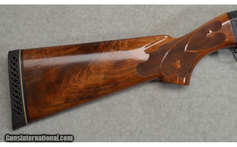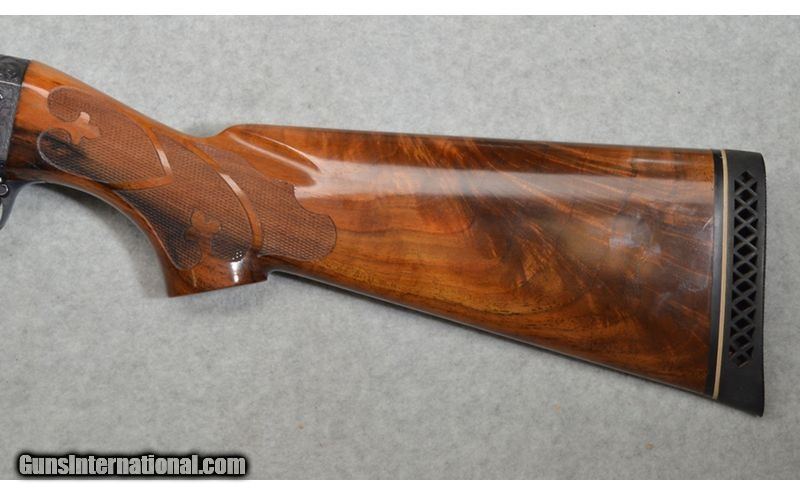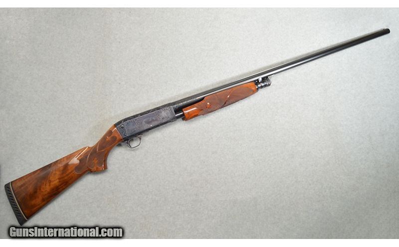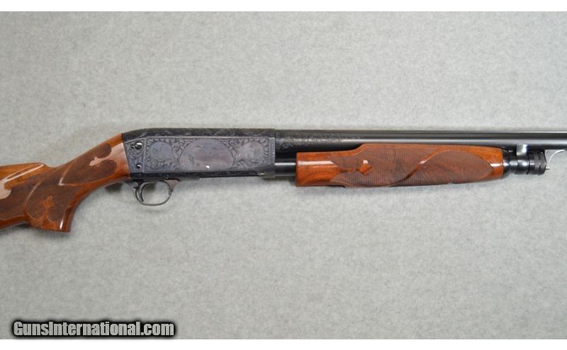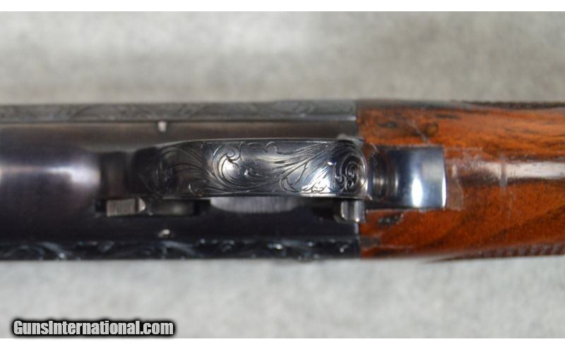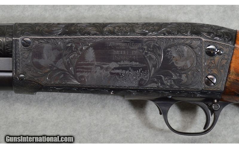 Description: Remington Rare Model 17, Engraved by Master Engraver Ken Hurst. Features beautiful game scene engraving and an upgraded stock. It features engravings by K. Hurst on the top of one of the barrels and frame. The frame has a scroll engraving around a dog and two game birds with "K. Hurst, Remington, Trade Mark, Model 17, 59624". The right side of the frame has a scroll pattern around four game birds. It has a LOP of 13 3/4". There is some wood repairs needed at the bottom of the tang near the trigger. It comes with a second barrel that does not have any engravings and shows signs of use. The right side of the frame has some slight wear on the engraving. SN: 59624 20 Gauge SOLD Metal Condition: Excellent condition with handing marks Wood Condition: Very good condition with handling marks Bore Condition: Clean and shiny Barrels: 30 Stock Dimensions: LOP 13 3/4 Fore End: Wooden with a checkered pattern Butt Pad: Rubber Weight: 6lbs 11oz Sights: Single bead Chokes: Improved Modified; Full Item Location: Fort Worth, TX |