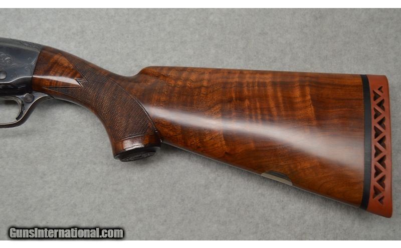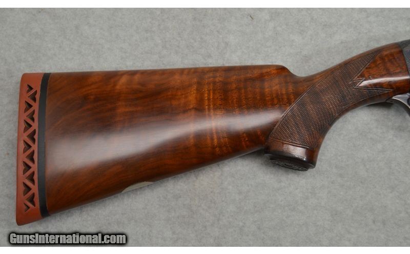 Description: Remington Model 31 E-Grade, 12 gauge shotgun is in excellent condition. It features scroll engraving around the scene of a dog in a field on both sides of the frame. The top and bottom have the same scroll engraving with some discoloration on the trigger guard. It has a wooden fore end and stock with a checkered pattern on the fore end and grip. It has minor handling marks on the barrel, fore end, and frame. SN: 70618 12 Gauge SOLD Chambers: 2 3/4" or shorter Metal Condition: Excellent condition with handling marks Wood Condition: Excellent condition with handling marks Bore Condition: Clean and shiny Barrels: 30 Stock Dimensions: LOP 13 1/4 Fore End: Wooden with a checkered pattern. Butt Pad: Rubber Weight: 8lbs 6oz Chokes: Full Item Location: Fort Worth, TX |