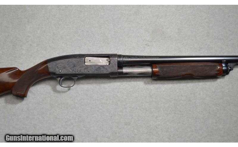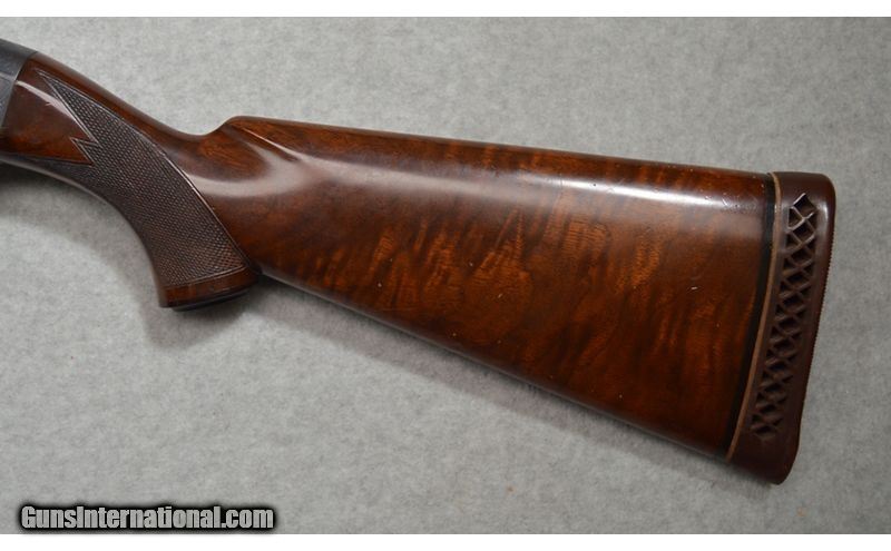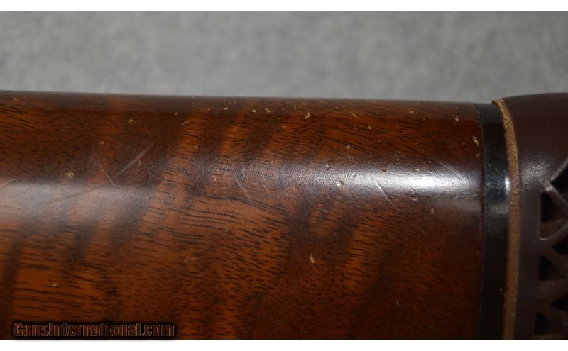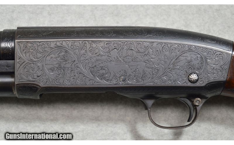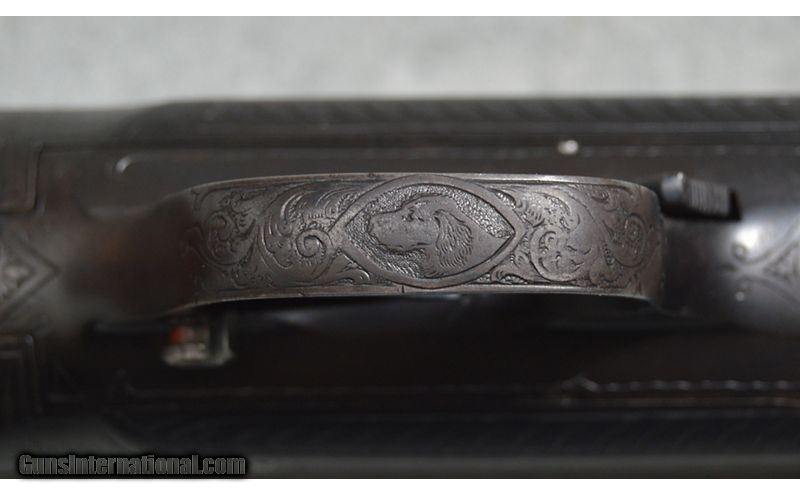 Description: Factory engraved Remington Model 31 F-Grade, 12 gauge shotgun is in very good condition. It features soft engravings on the top of the barrel and frame. The left side has a scroll engraving around two dogs and multiple game birds in a wooded scene. The right side has the same scroll engraving around two different dogs and multiple game birds in a grass scene. It has a wooden fore end and stock with a checkered pattern on the fore end and grip. The barrel, frame, and stock have handling marks. The magazine tube is retains 30% of its bluing. SN: 4391 SOLD Metal Condition: Very good condition Wood Condition: Good condition Bore Condition: Clean and shiny Barrels: 26 Stock Dimensions: LOP 14 1/2 Fore End: Wooden with a checkered pattern Butt Pad: Rubber Weight: 7lbs 5oz Sights: Single bead Chokes: Open Item Location: Fort Worth, TX |