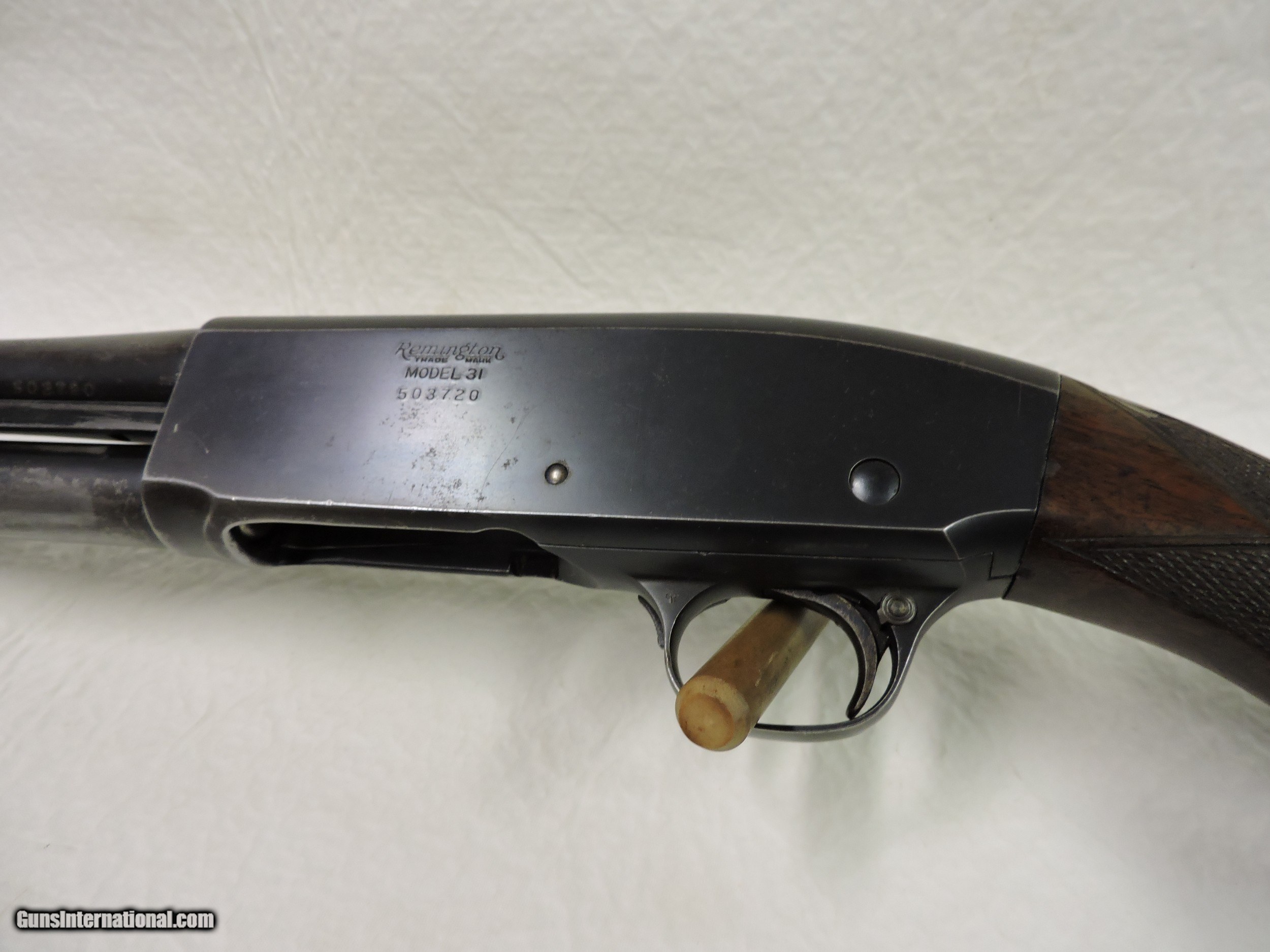 Description: Remington Model 31 Pump Action 16 ga. 28" plain barrell Modified Choke. The frong bead is a glow worm but can be replaced the threads are 6-48. This shotgun was made in 1934, with that many years the conditon is very good. This model also has checkering and high grade wood, acton works fine. This gun would be a must for any Remington collectors. $ 495.00 plus shipping and insurance. Email is CMommaday2345aol. Phone 330-534-3707. As is no returns. Thanks for looking. SOLD Shotgun Gauge: 16 Gauge |