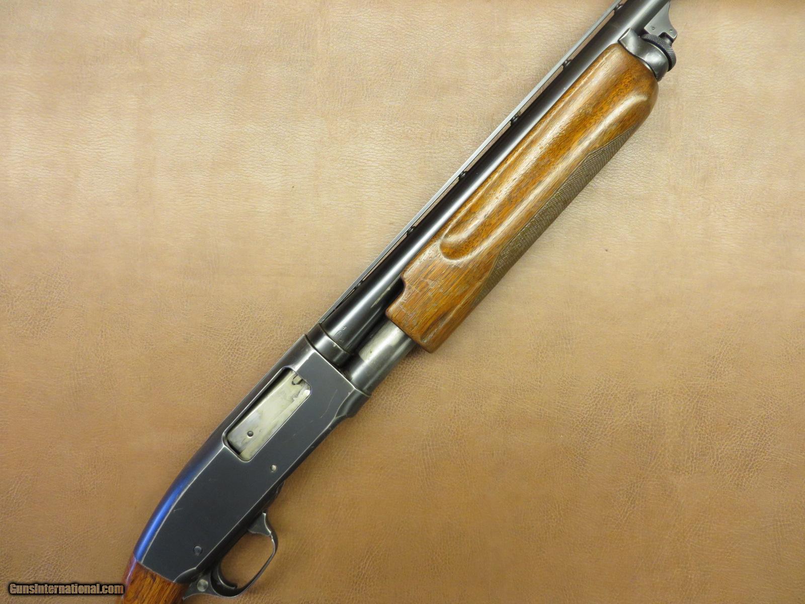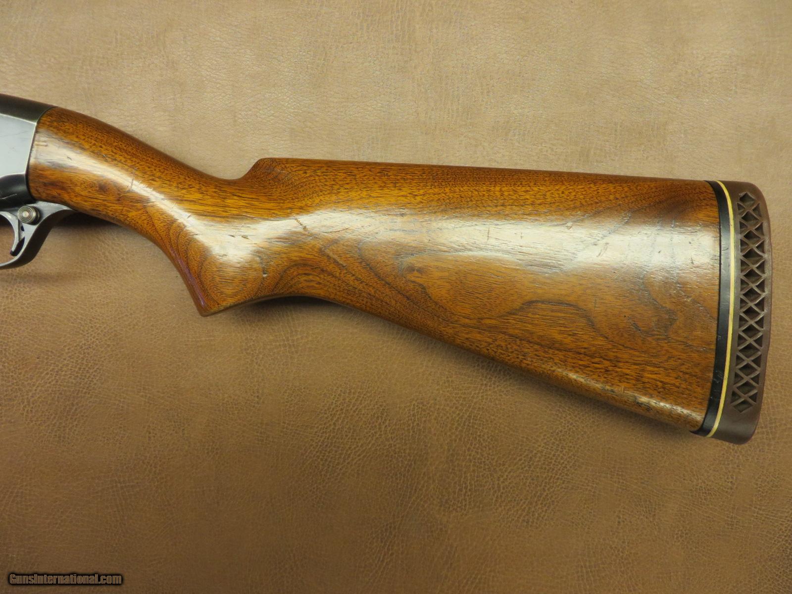 Description: 12 ga. 2 3/4 inch chamber has 26 inch skeet marked barrel with Simmons round post vent rib and a Cutts Compensator with spreader tube. Serial number 79xxx on receiver and 115xxx on barrel. Non checkered refinished walnut stock has Pachmayr recoil pad with 14 inch length of pull. Checkered walnut skeet style forend. Blue is about 85%. SOLD |
