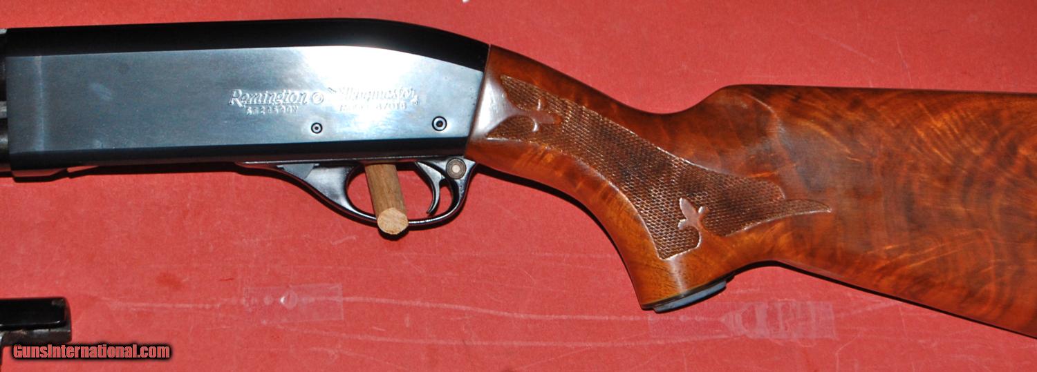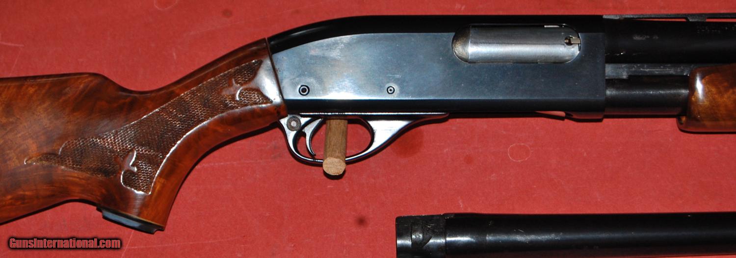 Description: Remington model 870 TB Wingmaster trap 2 barrel set.30" vent rib choked full and 28" vent rib choked modified.This gun is in as new condition,retaining 100%of the original blue and 100% of the original wood finish.The wood is highly figured and has a 141/4"LOP over the factory installed Remington pad.The stock is a straight comb with 11/4" drop at comb and 21/4" drop at heel.A great combination for trap or it would make a great hunting gun.Very hard to find in this condtion. SOLD Manufacturer: Remington Model: 870 TB Wingmaster Serial Number: S5624590V Chambers: 23/4 Stock Comb: 11/4 Stock Heel: 21/4 LOP: 141/4 Rib: vent |