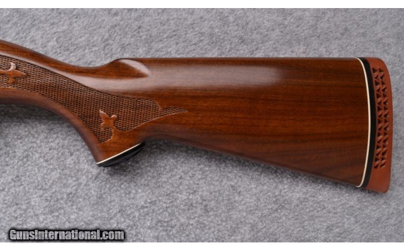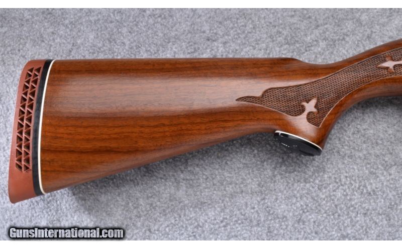 Description: Buttstock has been professionally refinished with a Remington recoil pad fitted. Forend remains original. Blue and bore remain excellent. No box. SOLD Manufacturer: S/N S147XXXX Caliber Info: 20 GA Chambers: 2 3/4 Metal Condition: Excellent Wood Condition: Very Good Bore Condition: Excellent Barrels: 28" Plain Triggers: Factory Stock: Checkered Walnut Pistol Grip with Black Cap Stock Dimensions: 13 7/8" LOP Fore End: Checkered Walnut Butt Pad: Red Vented Rubber Weight: 6 3/4 LB Sights: Single Front Bead Chokes: Modified Item Location: Wheeling, WV |