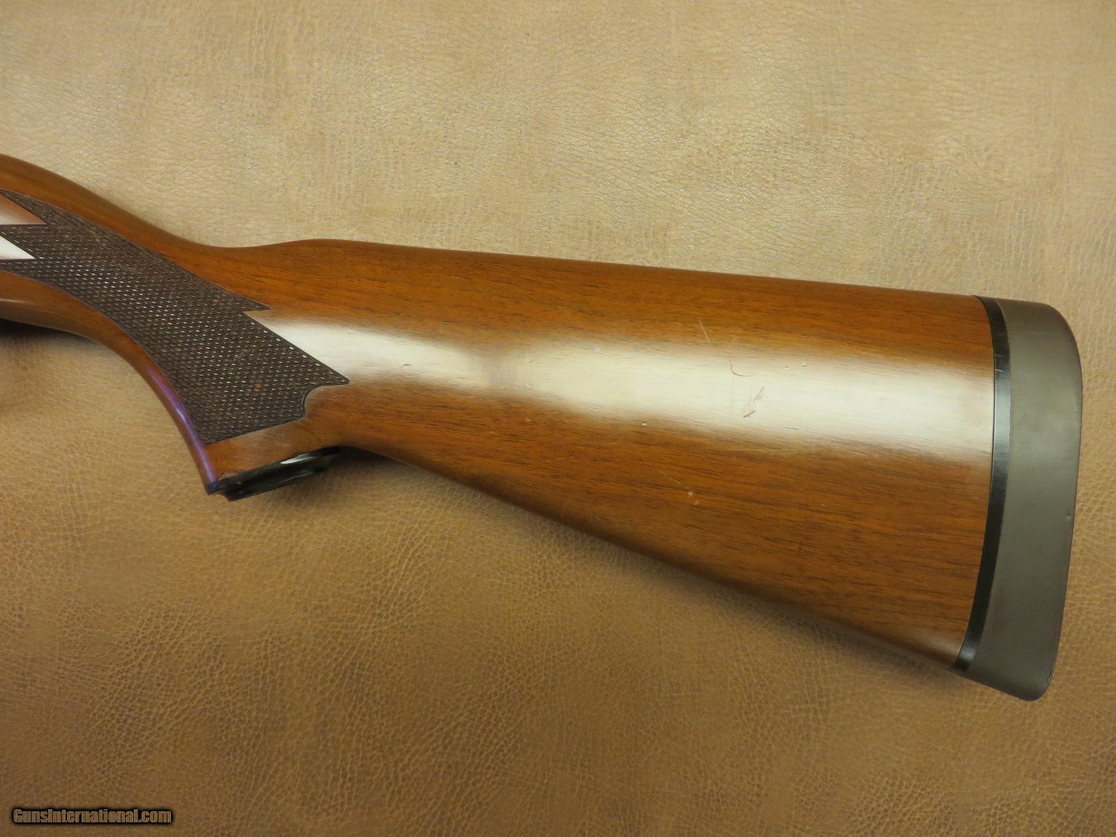 Description: 12 ga. for 2 3/4 or 3 inch shells has 28 inch vent rib Remchoke barrel. Satin finish checkered walnut with pistol grip cap and original rubber butt pad. All near 95% condition with some light freckling of the blue mostly on the left side of receiver. SOLD |