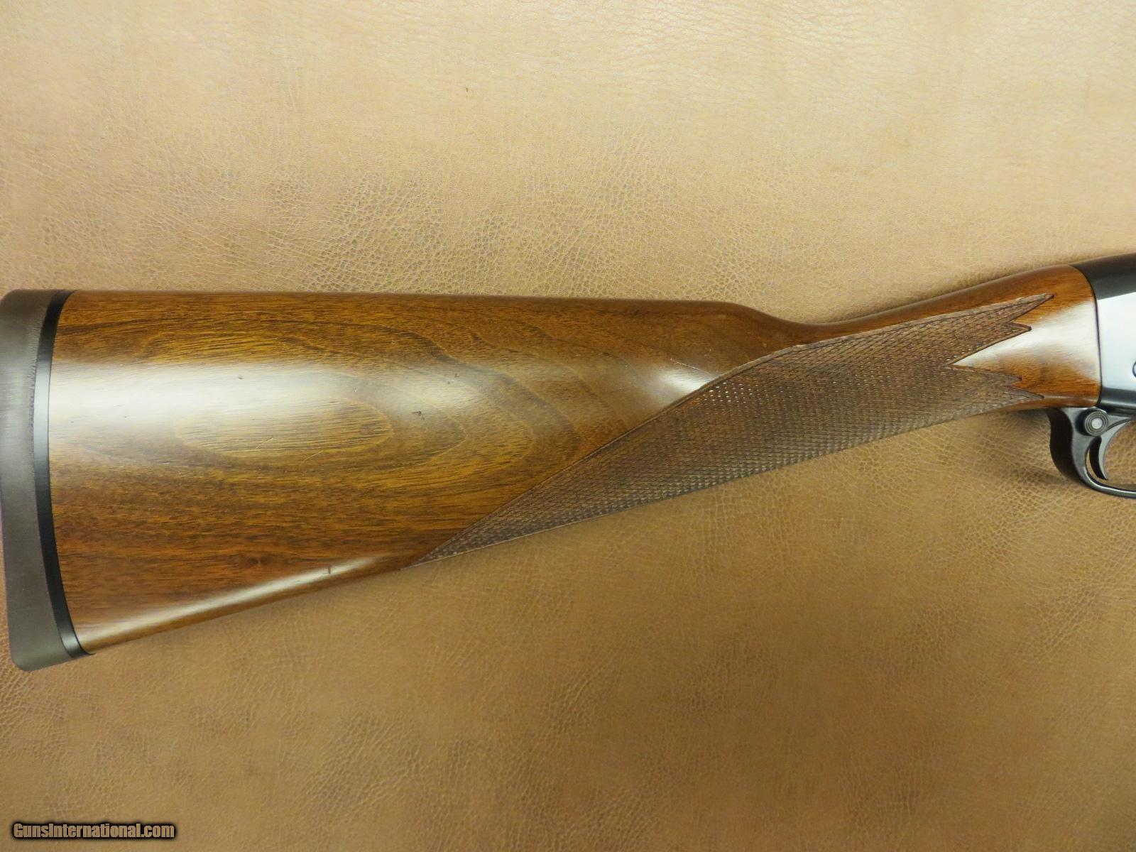 Description: 20 ga. for 2 3/4 and 3 inch shells has 23 inch vent rib Remchoke barrel. Checkered walnut straight grip stock with original rubber butt pad. Blue and forend finish are 99%. The stock is 97%. SOLD |