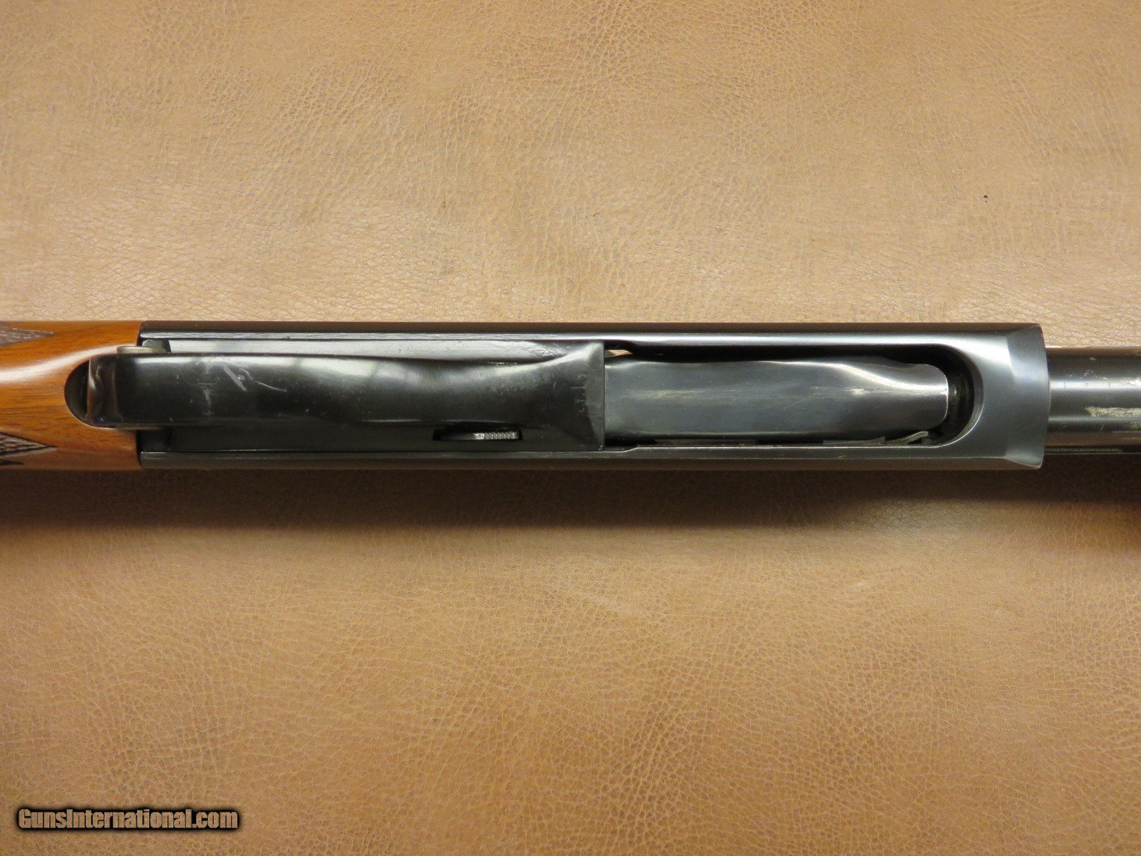 Description: 20 ga. for 2 3/4 or 3 inch shells has 21 inch vent rib improved cylinder choke barrel. Satin finish checkered walnut straight grip stock with original rubber butt pad. Blue is 95%+ and the wood is 98%. SOLD |